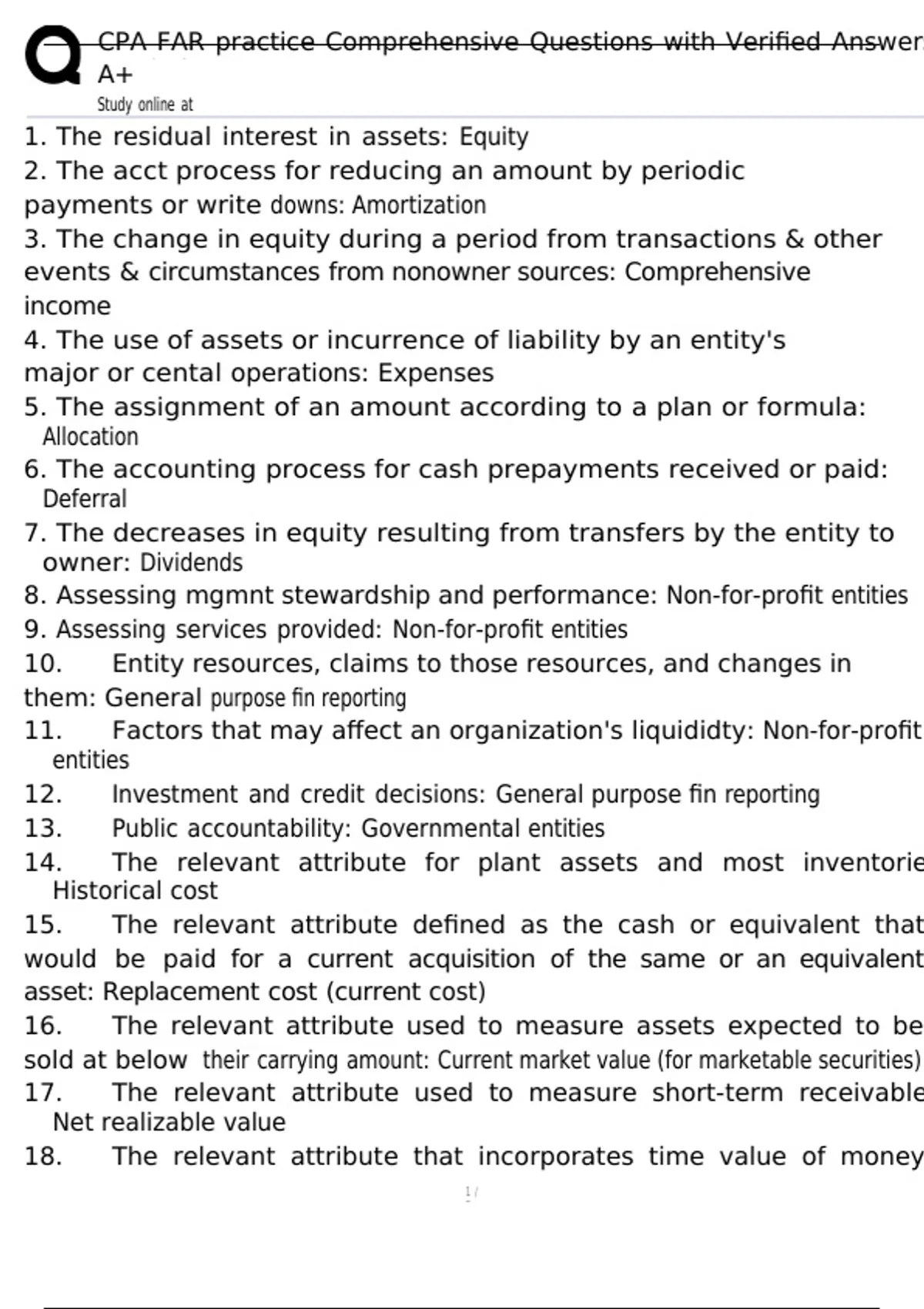 15. The relevant attribute defined as the cash or equivalent that