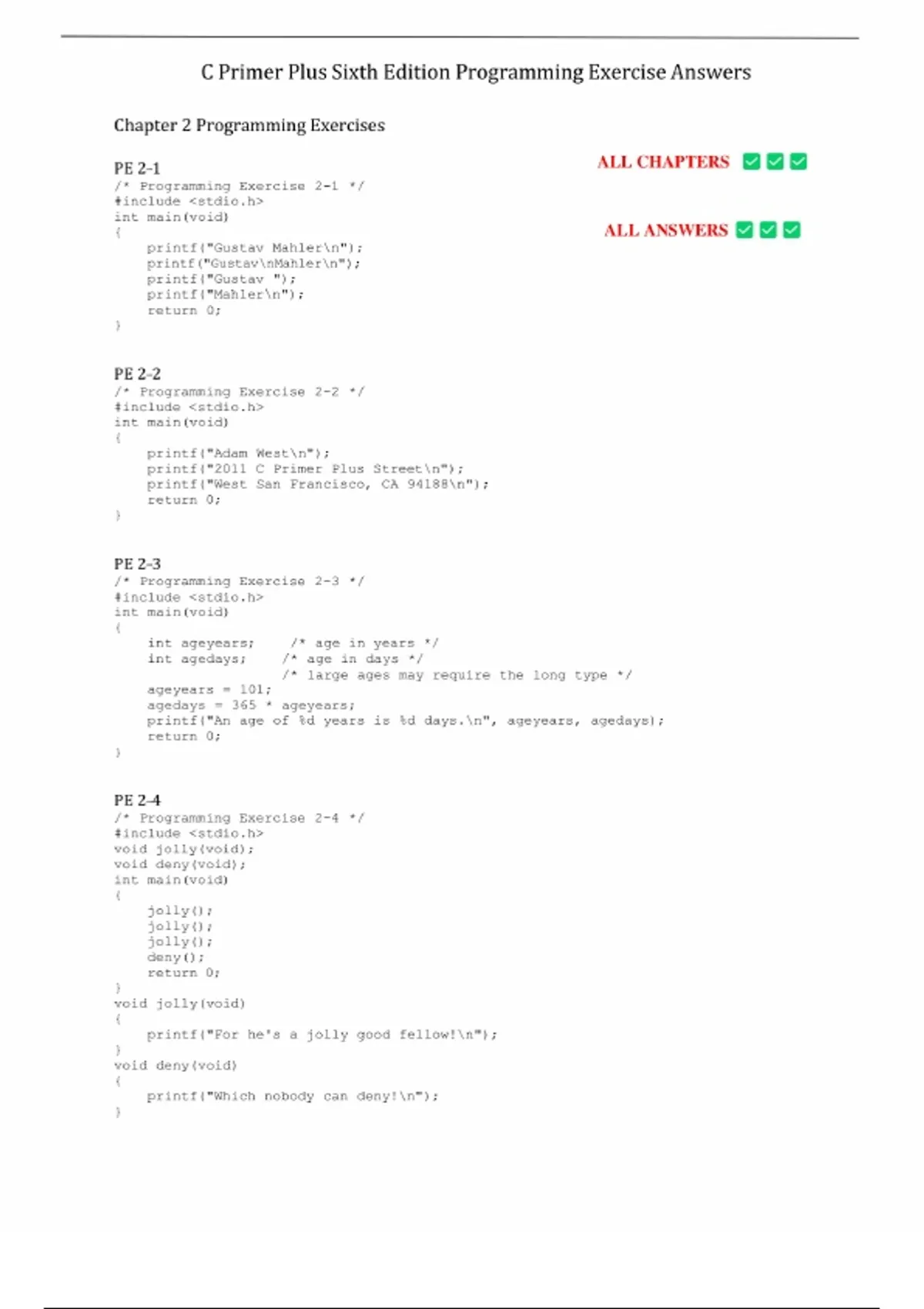 Test Bank - C Primer Plus, 6th edition (Stephen Prata, 2013), Chapter 1-17 | All Chapters