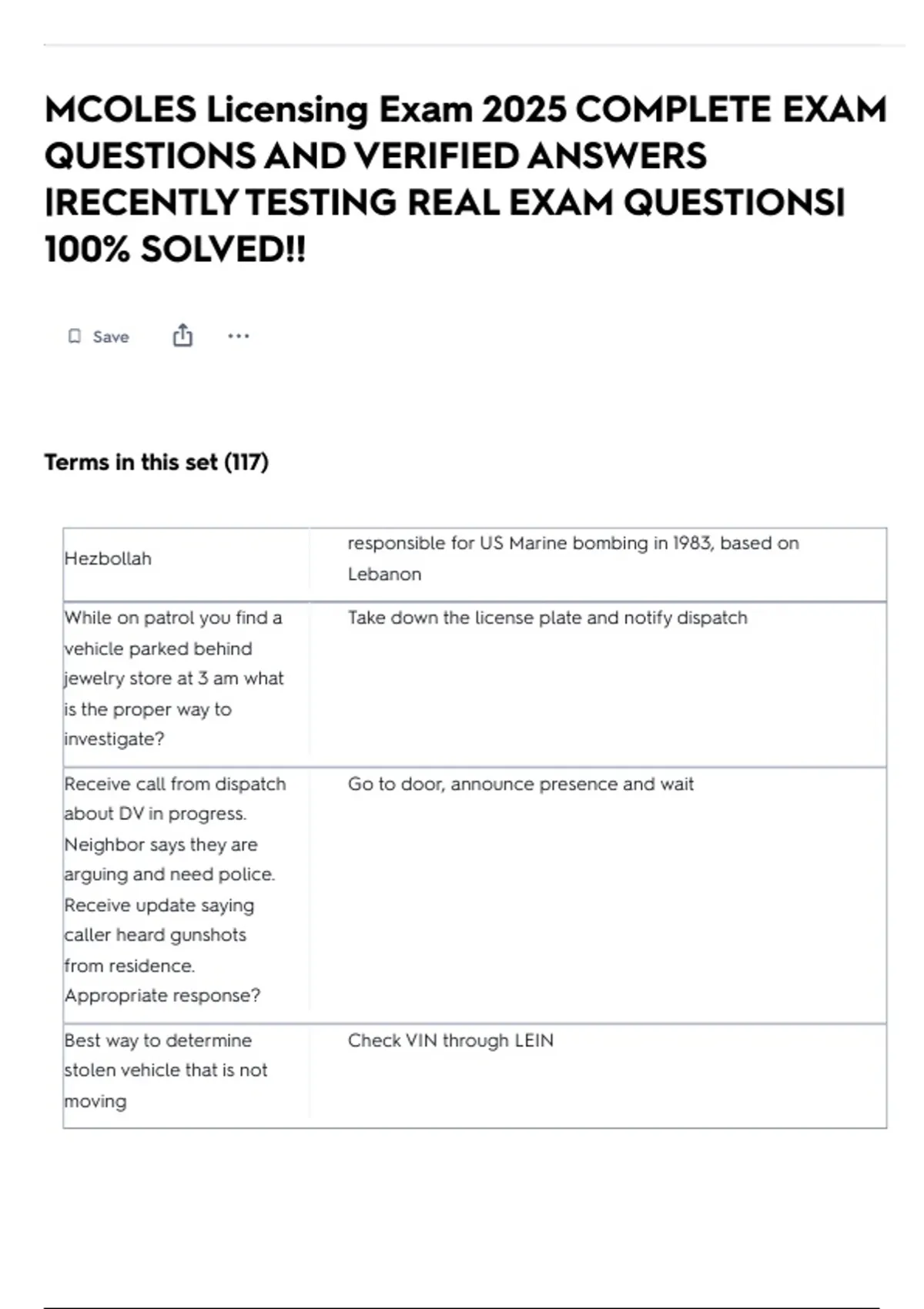 MCOLES Licensing Exam 2025 COMPLETE EXAM QUESTIONS AND VERIFIED ANSWERS |RECENTLY TESTING REAL EXAM QUESTIONS| 100% SOLVED!!