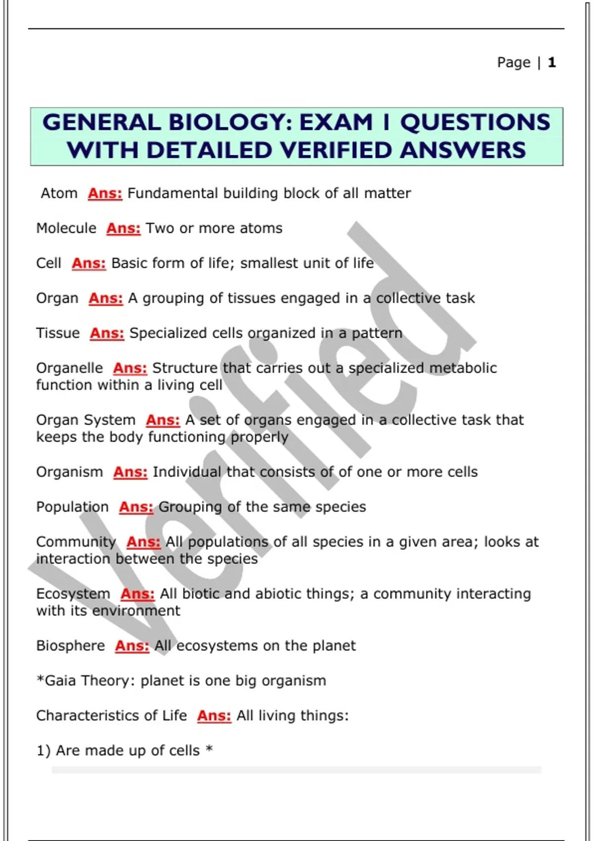 GENERAL BIOLOGY: EXAM 1 QUESTIONS