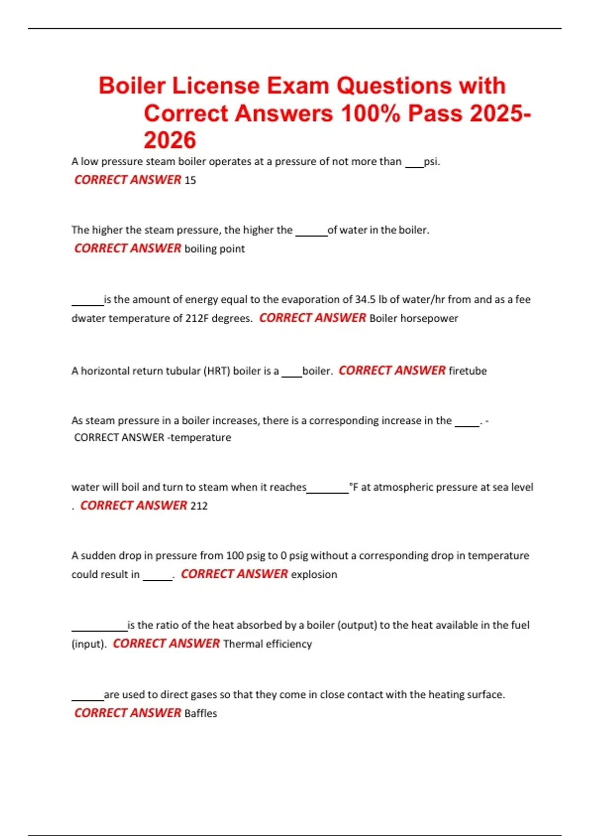ANSWER at least 75% of the safety valve popping pressure on the boiler