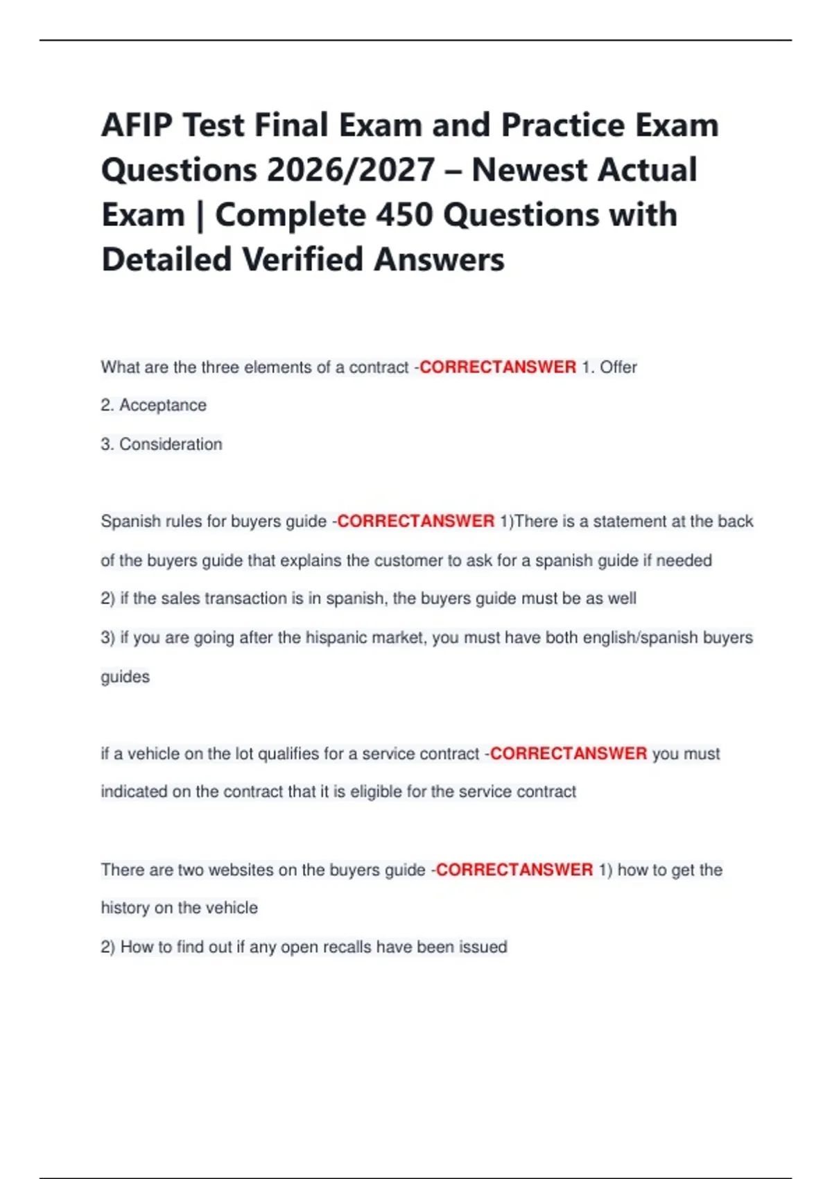 AFIP Test Final Exam and Practice Exam Questions 2026/2027 – Newest Actual Exam | Complete 450 Questions with Detailed Verified Answers