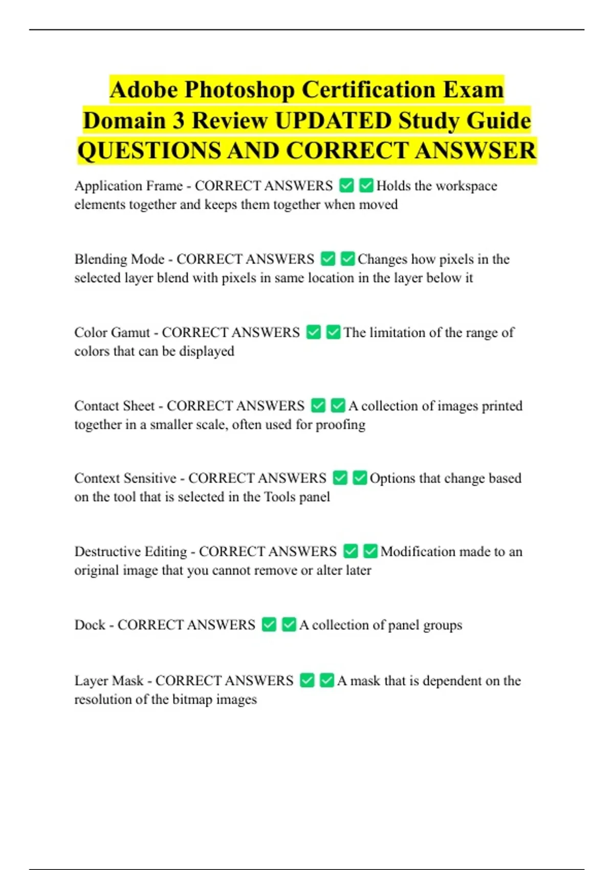 QUESTIONS AND CORRECT ANSWSER
