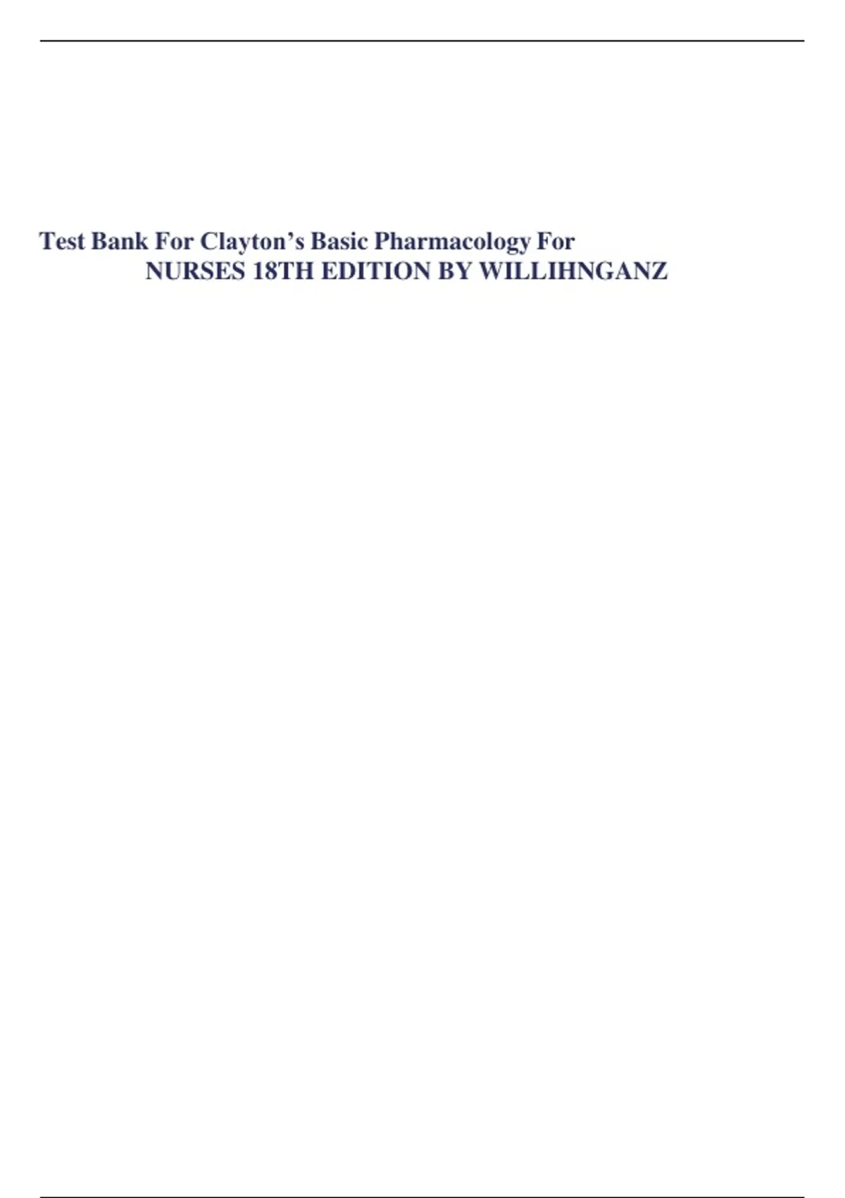 Test Bank for Clayton's Basic Pharmacology for Nurses 18th Edition by Michelle J. Willihnganz, Samuel L. Gurevitz & Bruce D. Clayton|All Chapters| UPDATED |2025