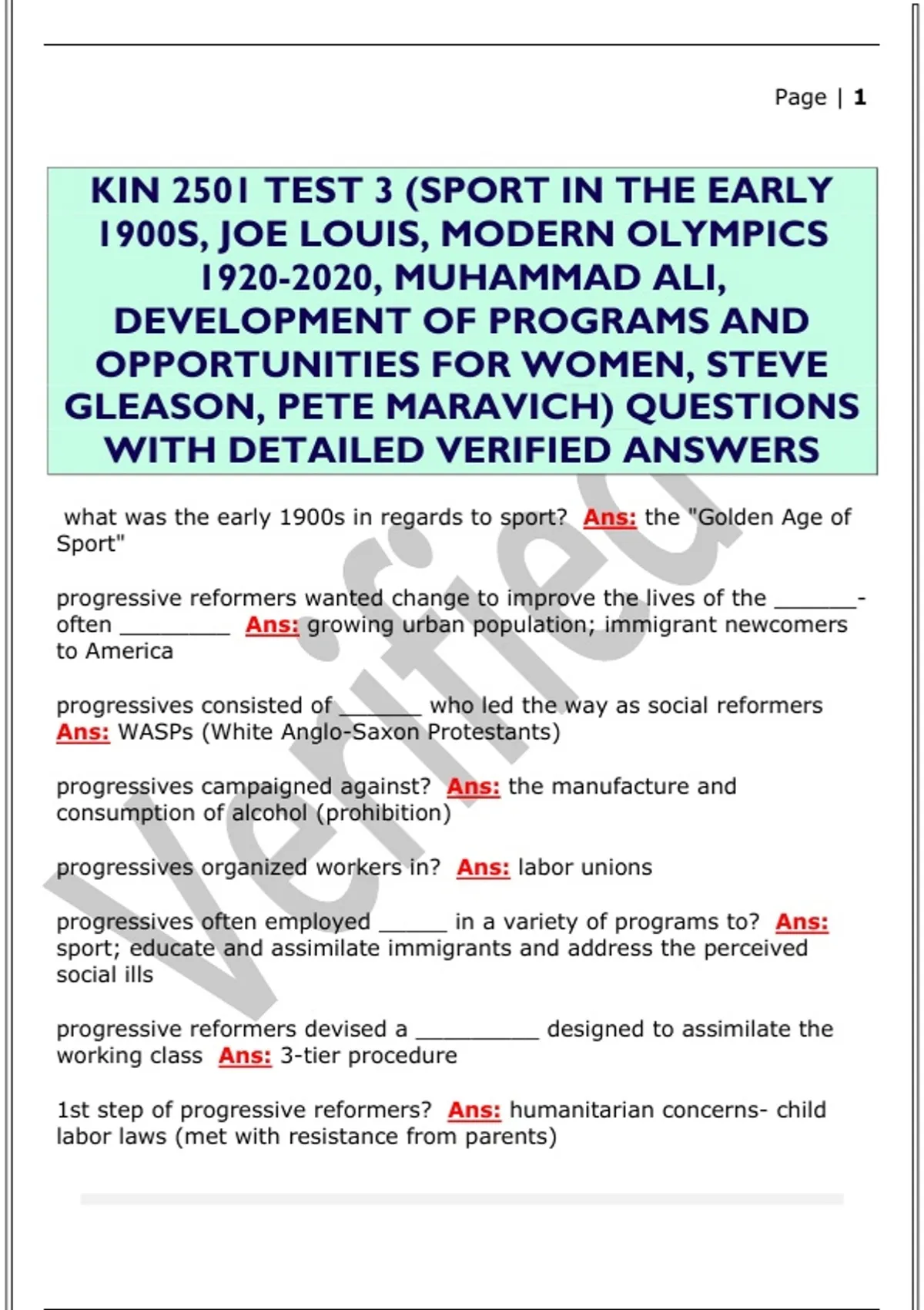 KIN 2501 TEST 3 (SPORT IN THE EARLY