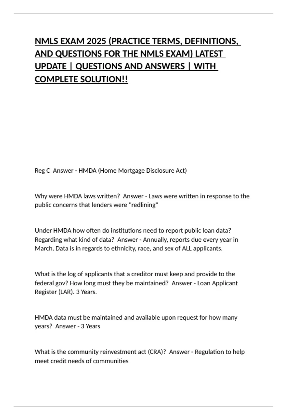 AND QUESTIONS FOR THE NMLS EXAM) LATEST