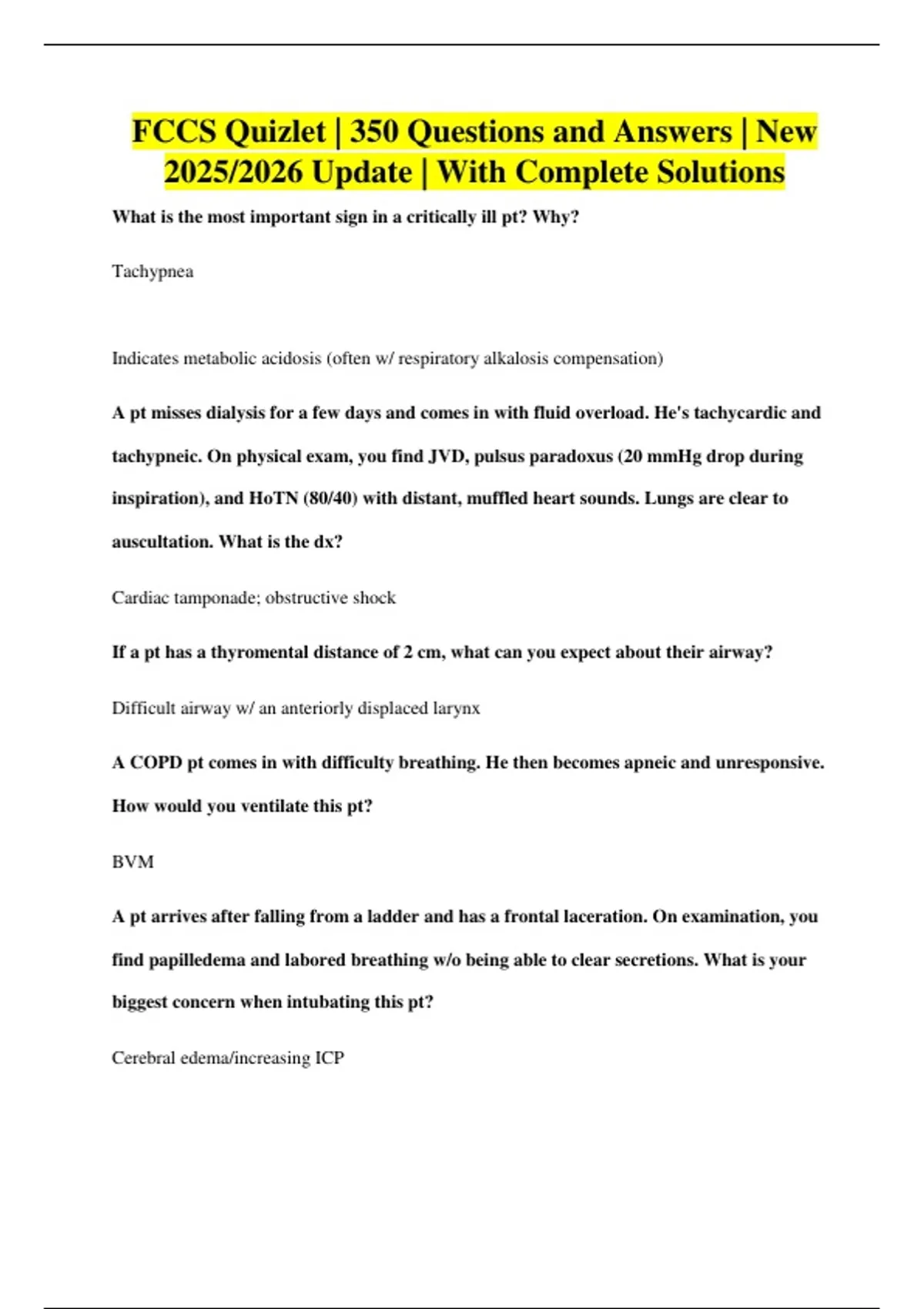 FCCS Quizlet | 350 Questions and Answers | New 2025/2026 Update | With Complete Solutions