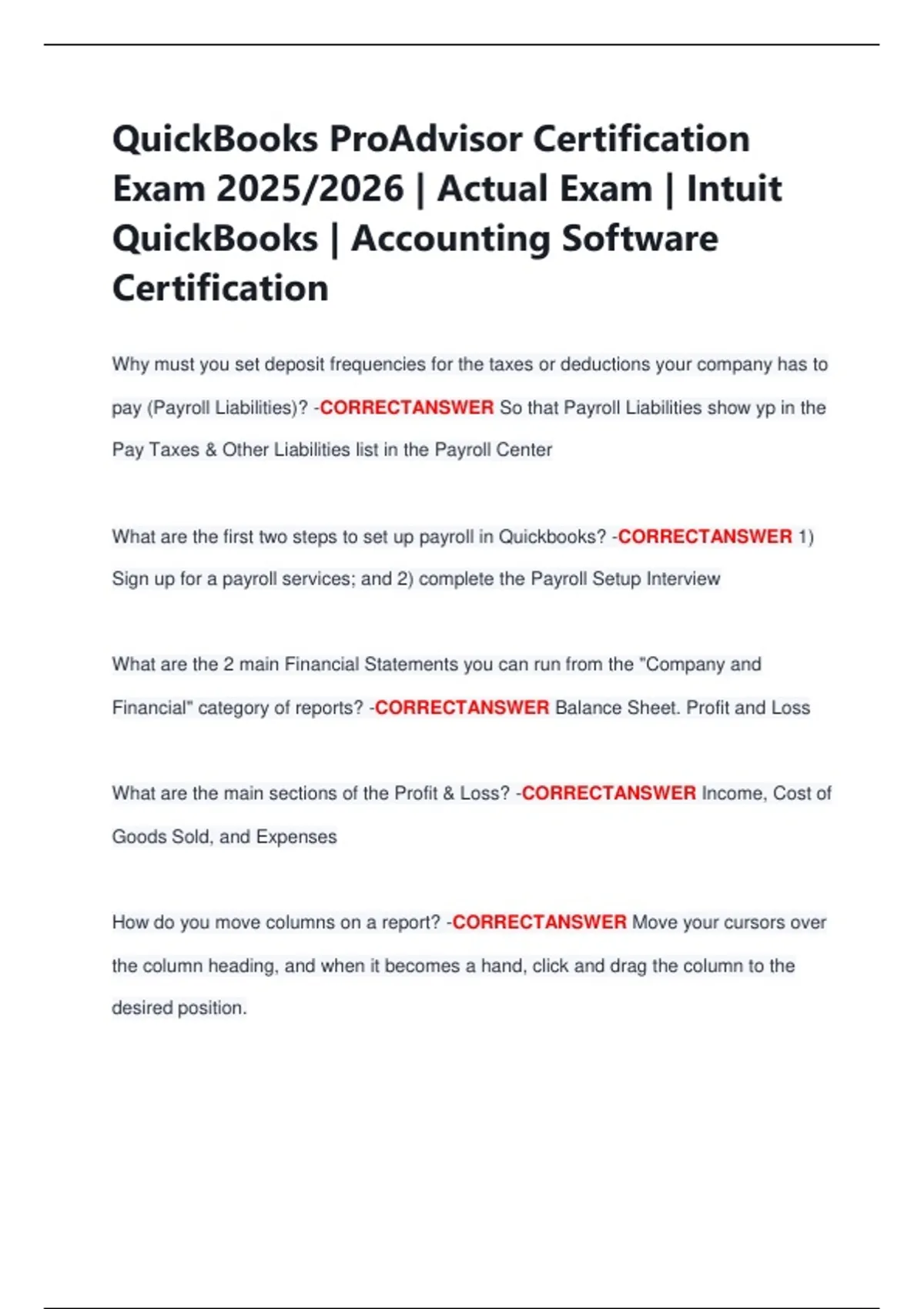 QuickBooks ProAdvisor Certification Exam 2025/2026 | Actual Exam | Intuit QuickBooks | Accounting Software Certification