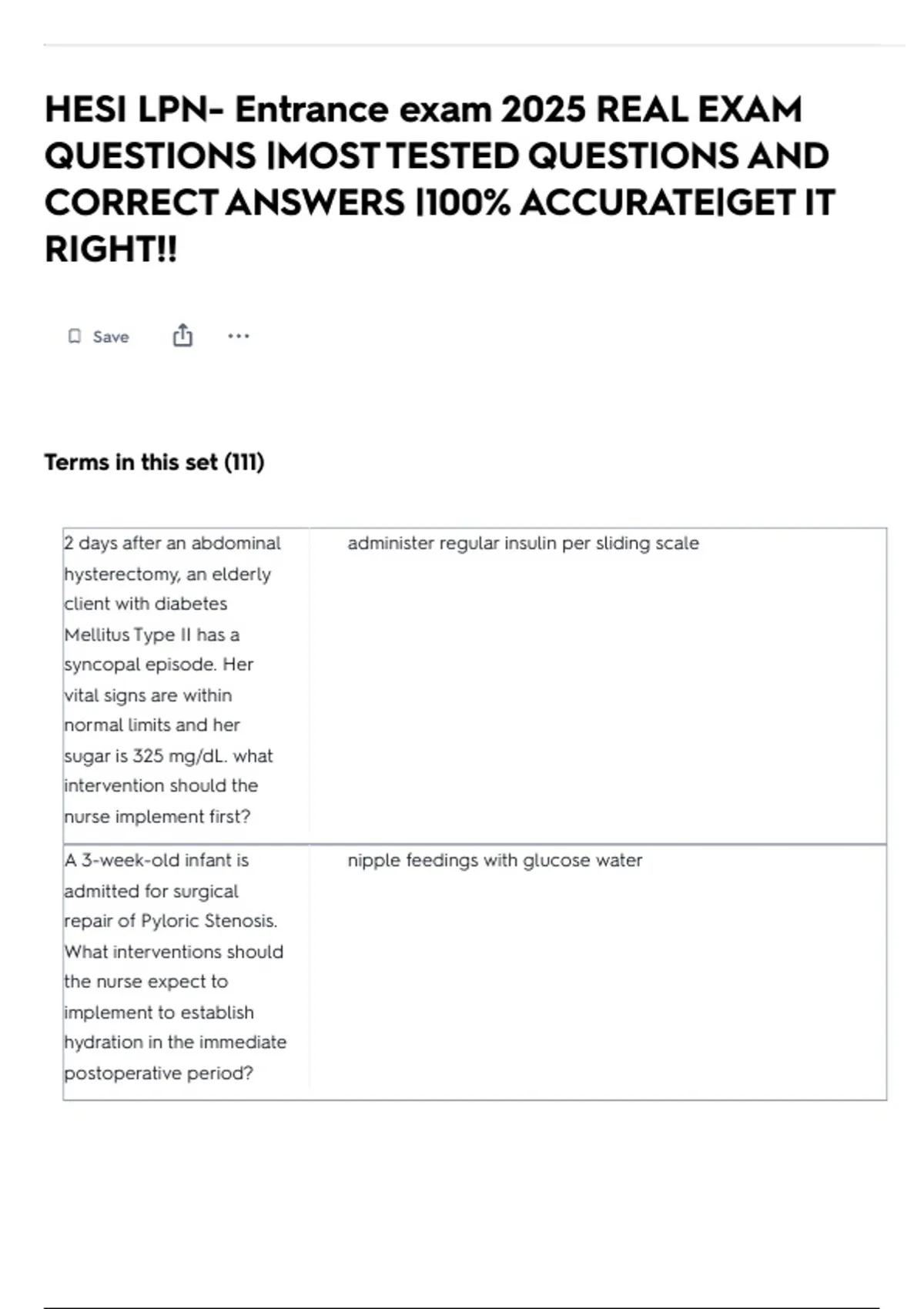 HESI LPN- Entrance exam 2025 REAL EXAM