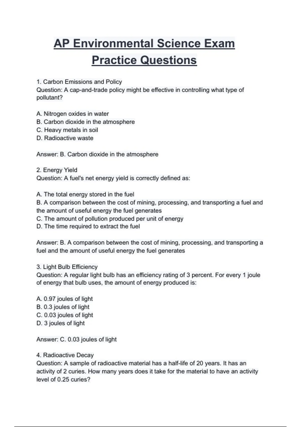 AP Environmental Science Exam