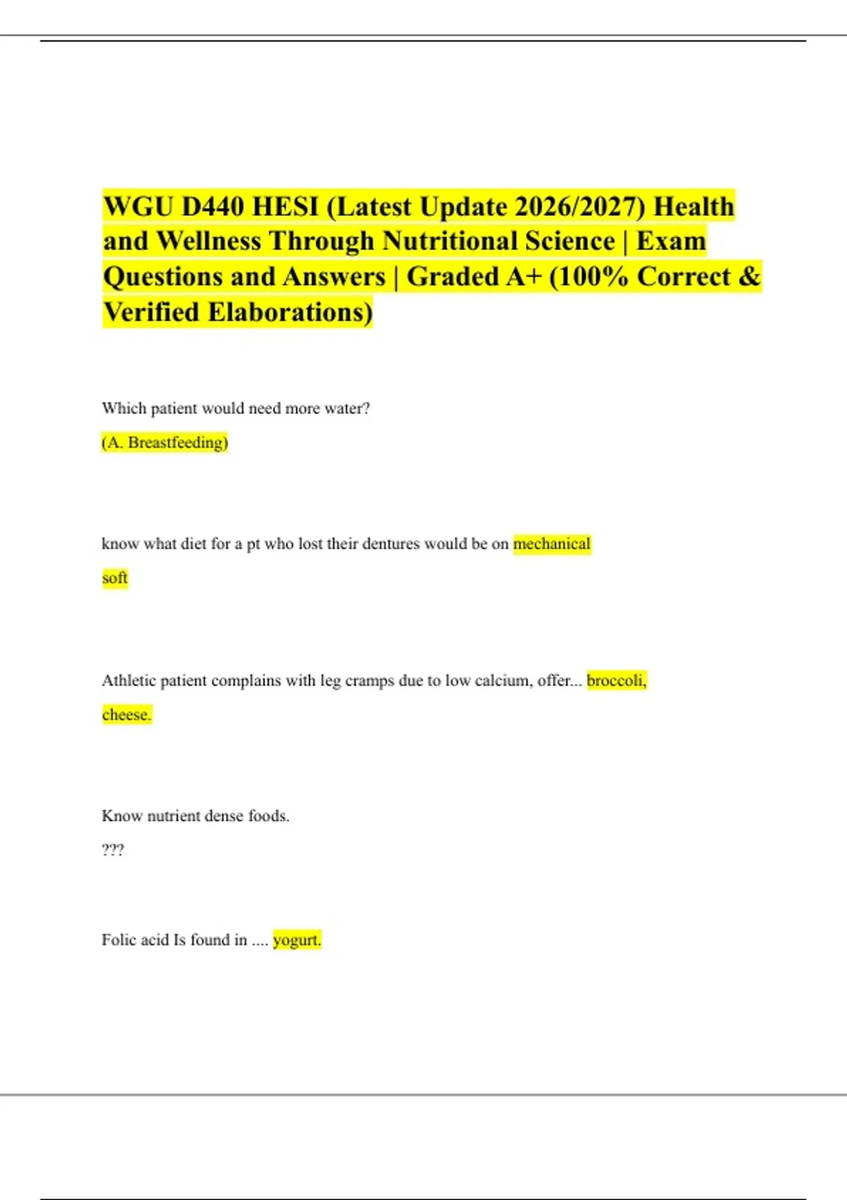 and Wellness Through Nutritional Science | Exam