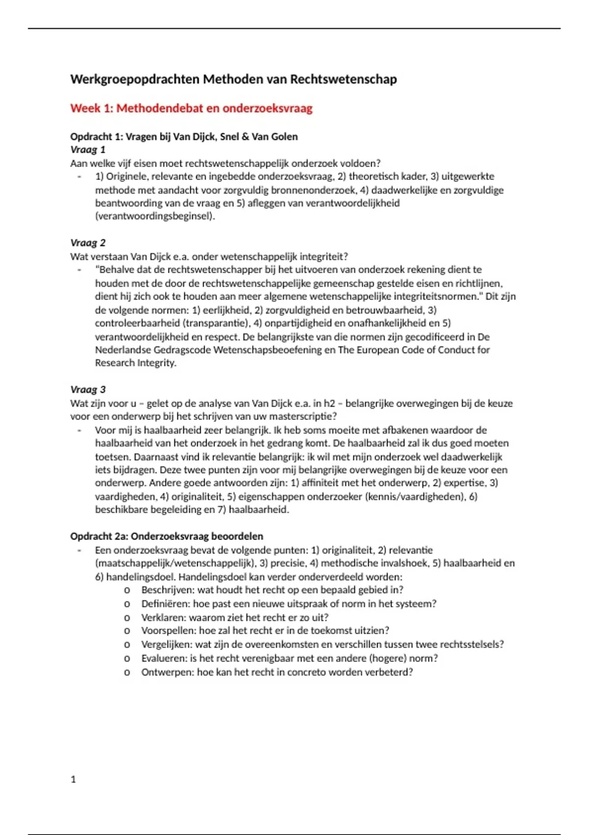 Uitwerking werkgroepopdrachten Methoden van Rechtswetenschap