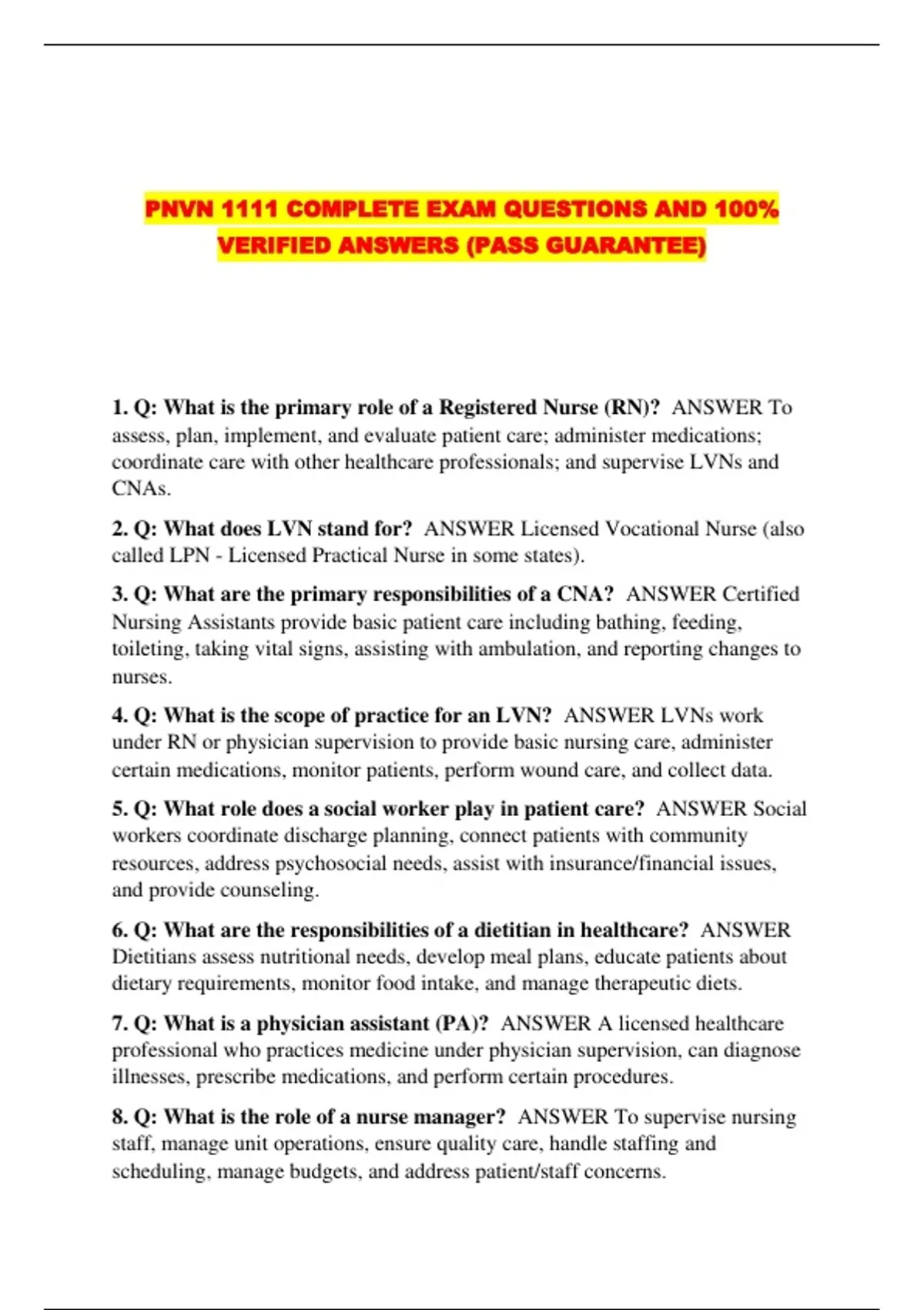 PNVN 1111 COMPLETE EXAM QUESTIONS AND 100% VERIFIED ANSWERS (PASS GUARANTEE)....