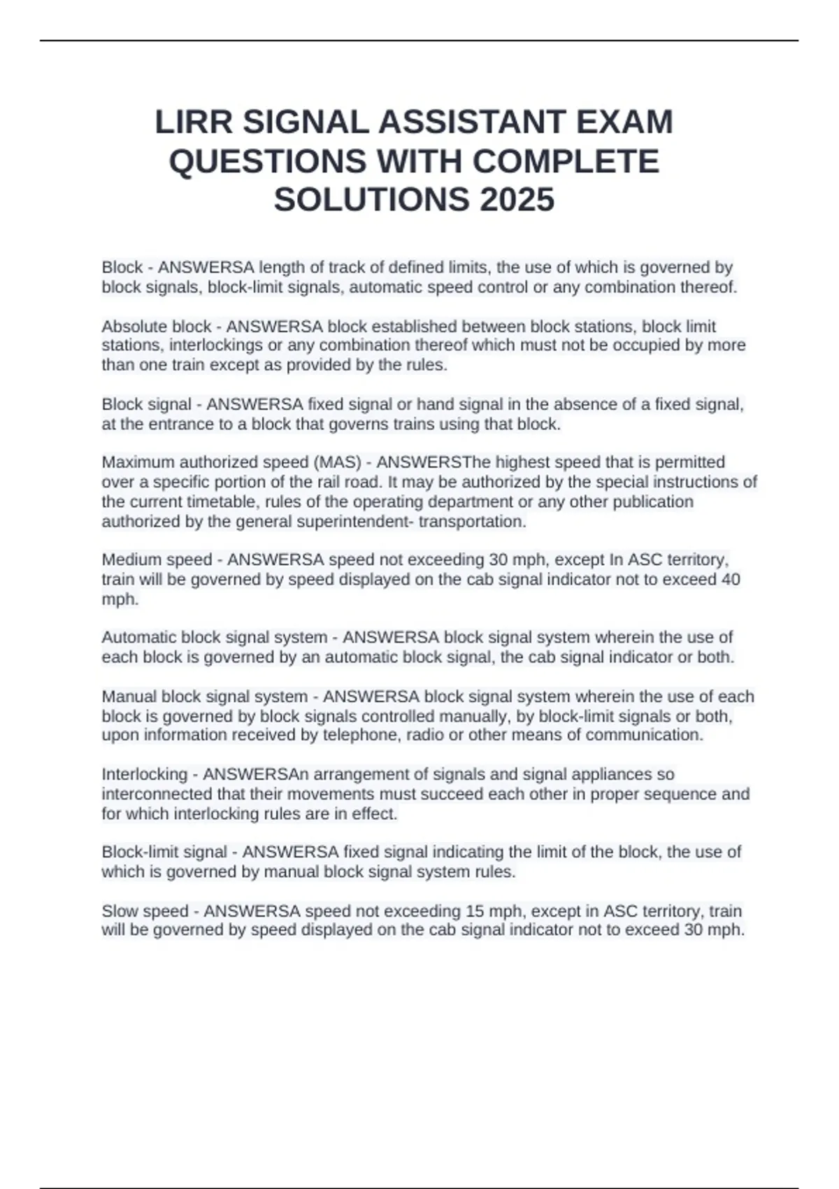 LIRR SIGNAL ASSISTANT EXAM QUESTIONS WITH COMPLETE SOLUTIONS 2025