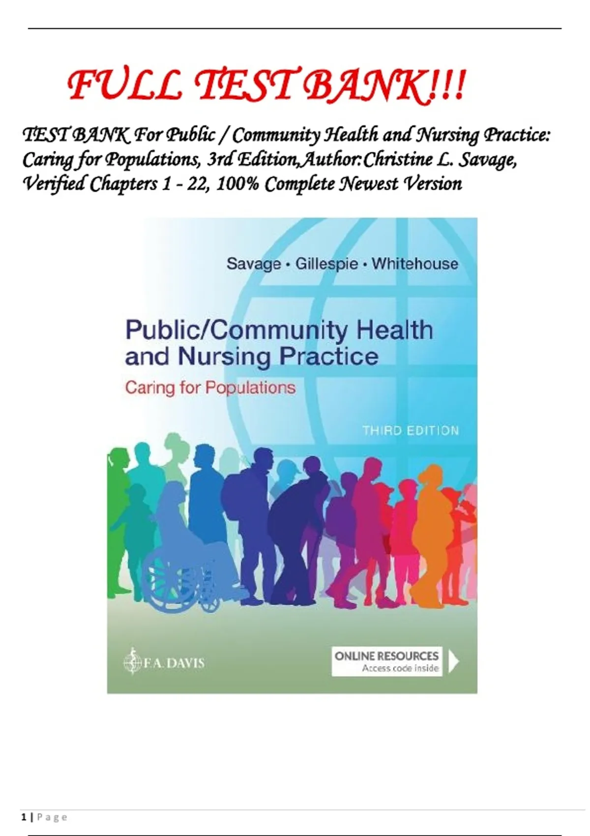 TEST BANK For Public / Community Health and Nursing Practice: