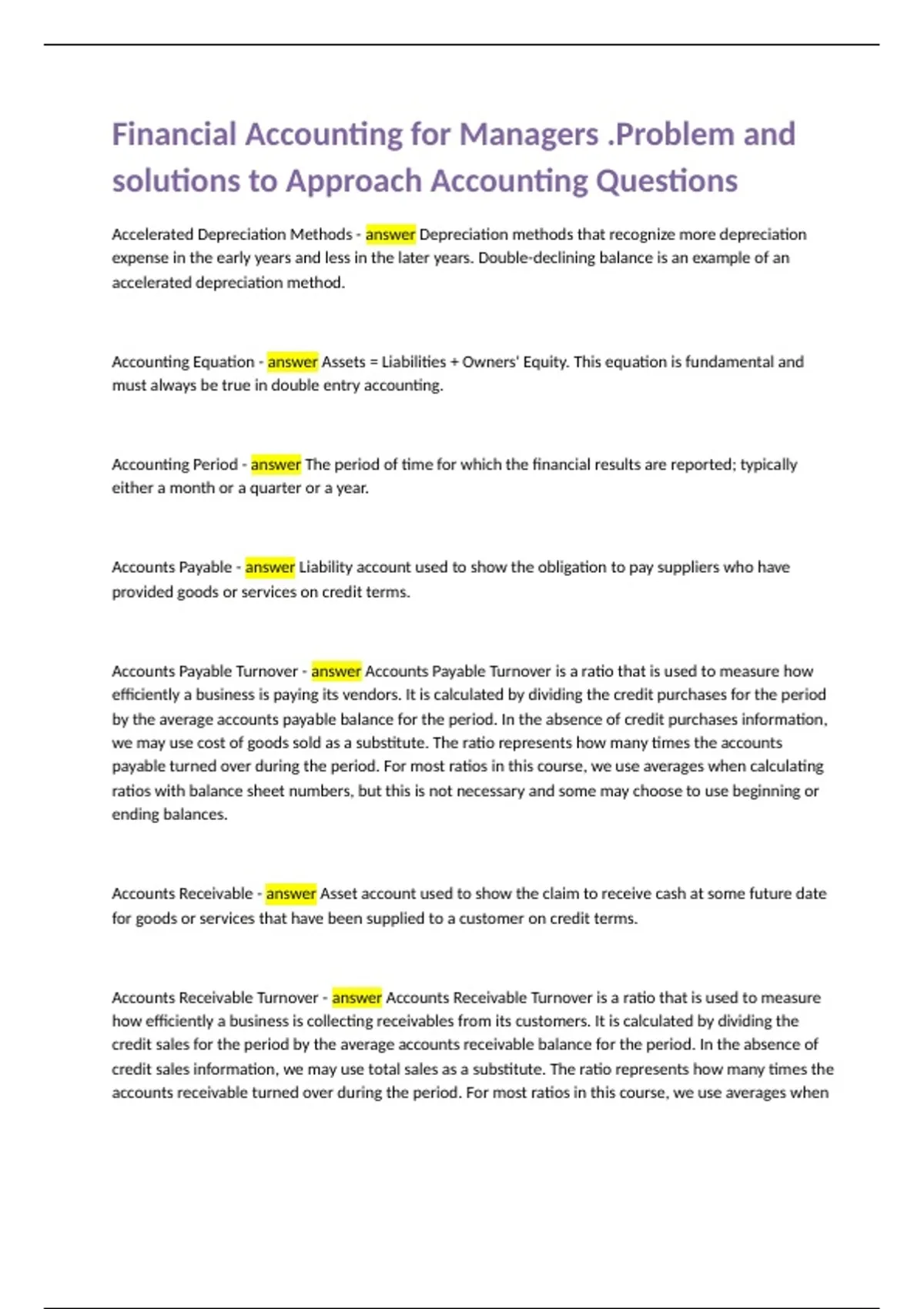 Financial Accounting for Managers .Problem and solutions to Approach Accounting Questions