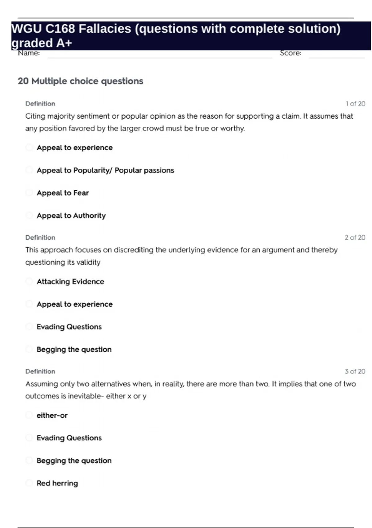 WGU C168 Fallacies (questions with complete solution) graded A+