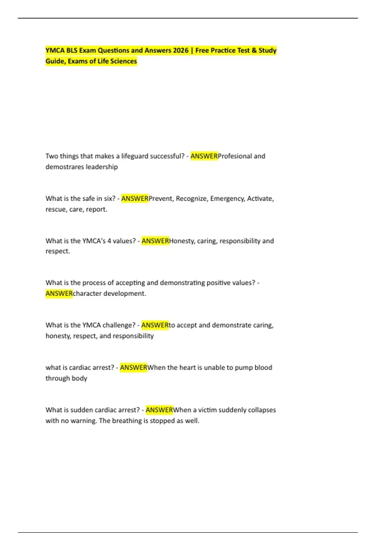 YMCA BLS Exam Questions and Answers 2026 | Free Practice Test & Study