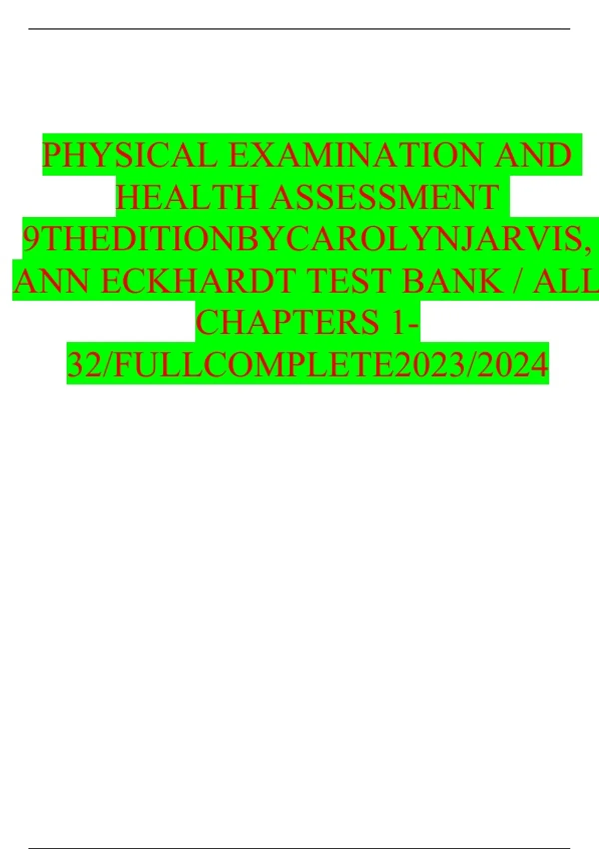 , PHYSICAL cEXAMINATION cAND cHEALTH cASSESSMENT c9TH cEDITION cJARVIS cTEST