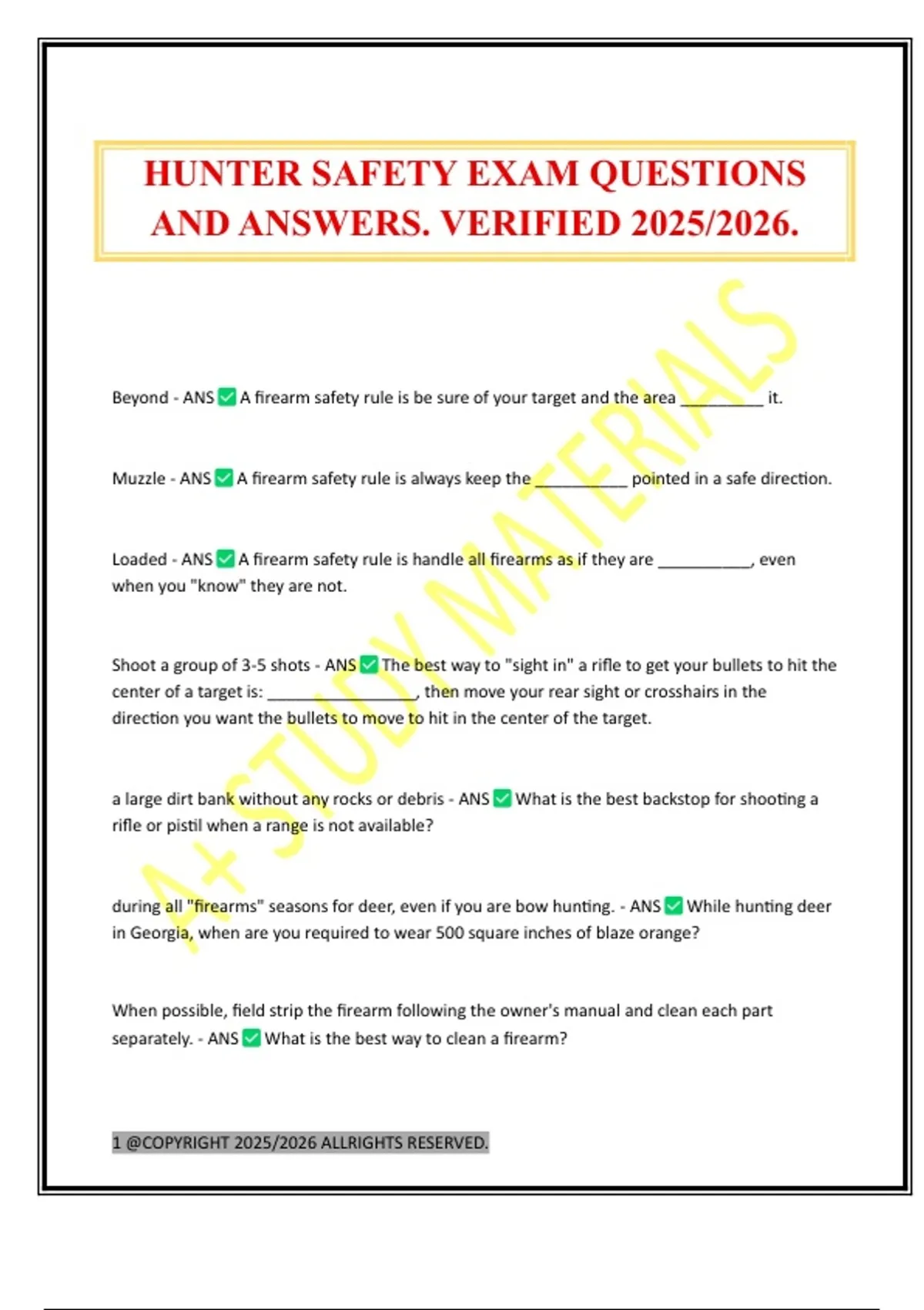 HUNTER SAFETY EXAM QUESTIONS AND ANSWERS. VERIFIED 2025/2026.
