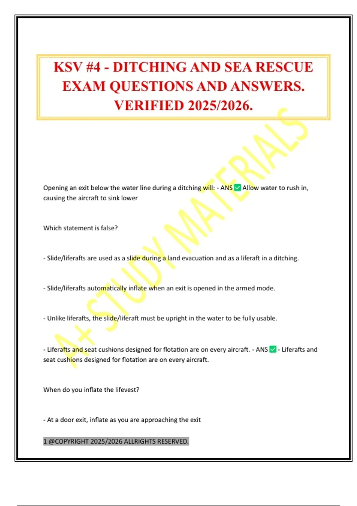 KSV #4 - DITCHING AND SEA RESCUE EXAM QUESTIONS AND ANSWERS. VERIFIED 2025/2026