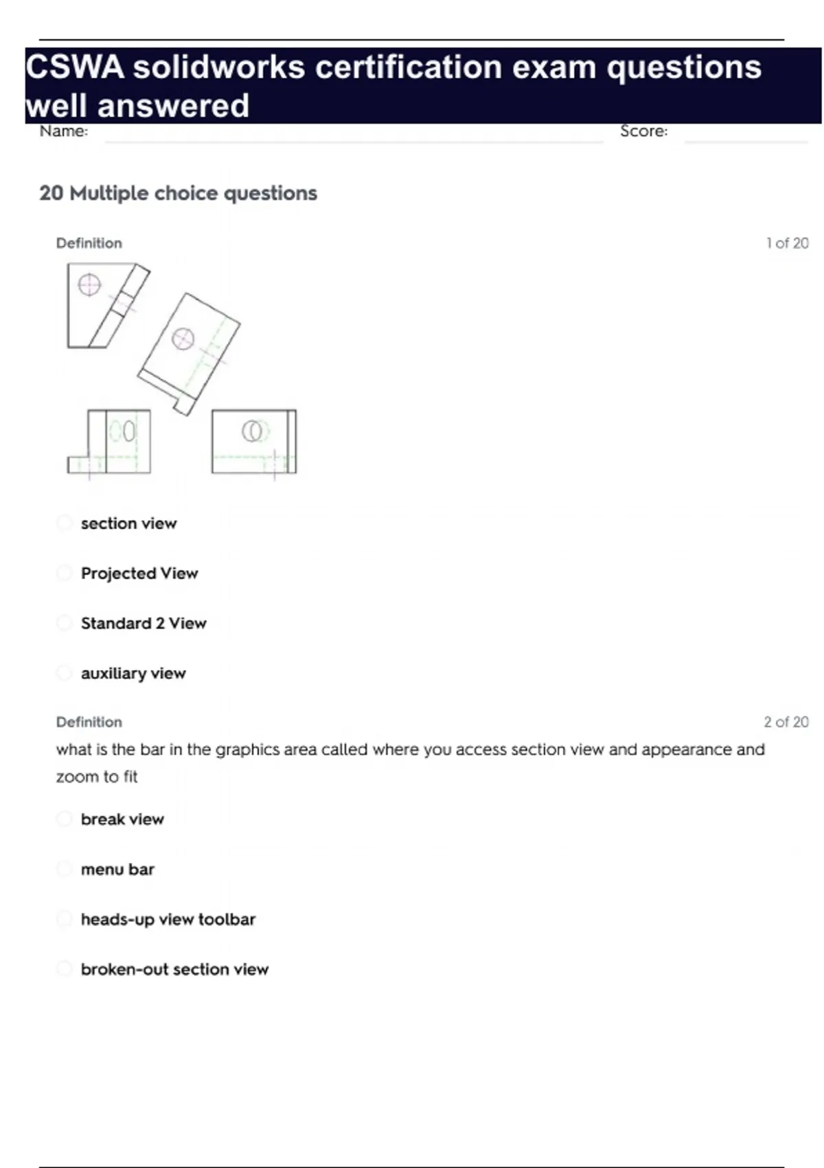 cswa solidworks certification exam questions well