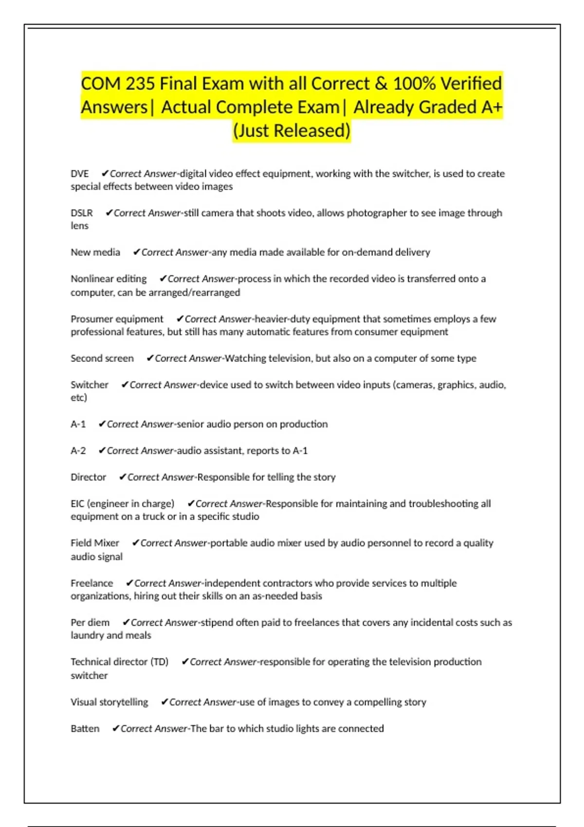 Nonlinear editing ✔Correct Answer-process in which the recorded video is transferred onto a