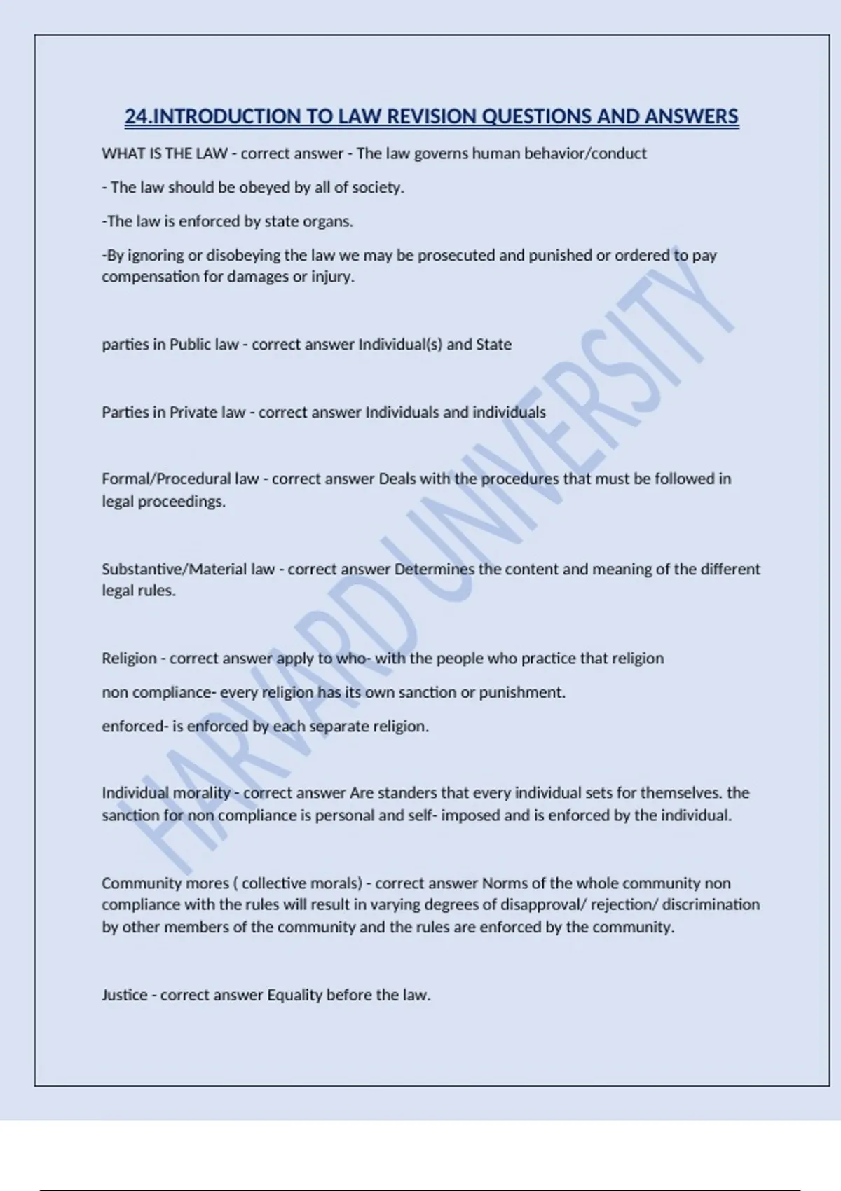 24.INTRODUCTION TO LAW REVISION QUESTIONS AND ANSWERS