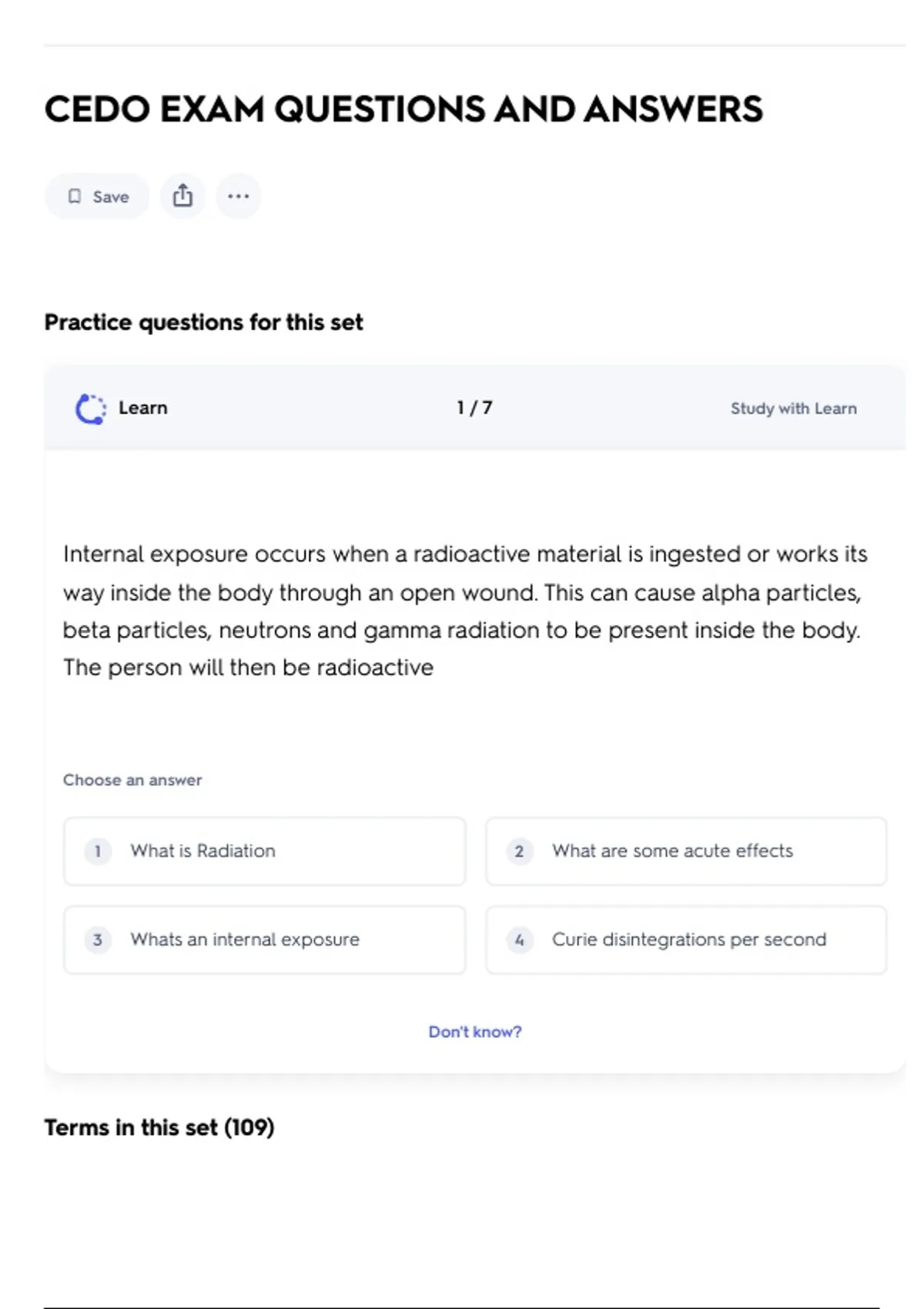 3 Whats an internal exposure 4 Curie disintegrations per second
