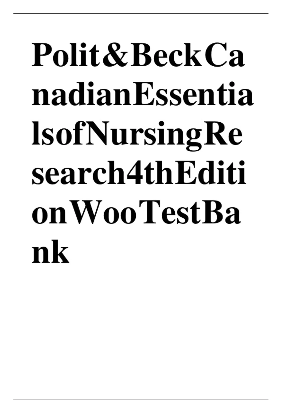 Polit & Beck Canadian Essentials of Nursing Research 4th Edition Woo Test Bank – Questions & Answers Included
