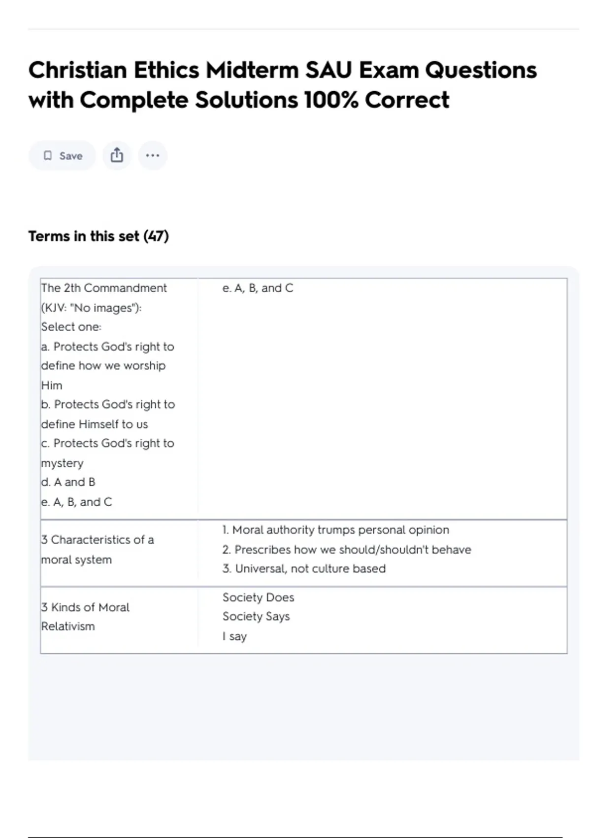 Christian Ethics Midterm SAU Exam Questions with Complete Solutions 100% Correct