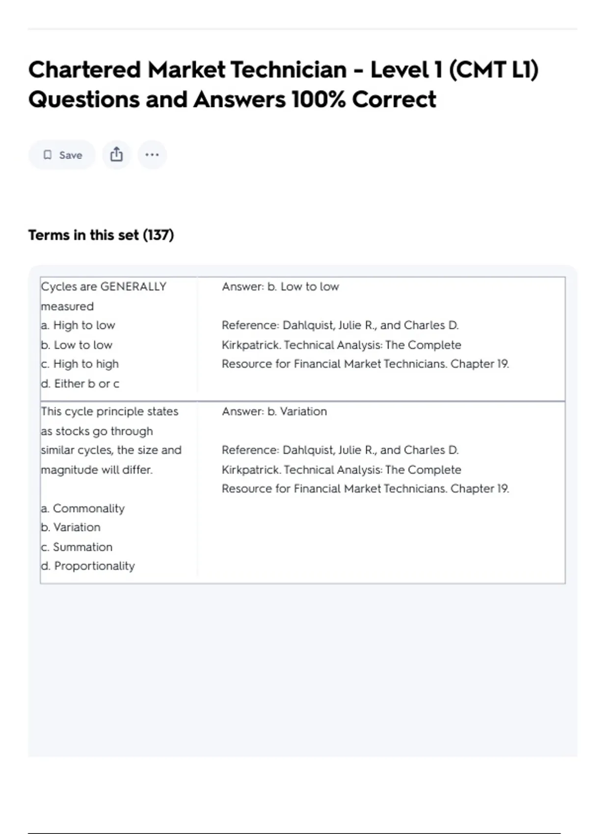 Chartered Market Technician - Level 1 (CMT L1) Questions and Answers 100% Correct
