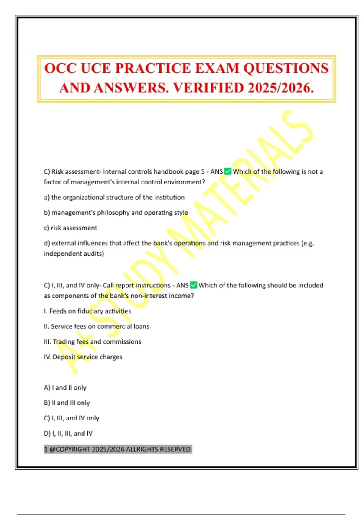 OCC UCE PRACTICE EXAM QUESTIONS
