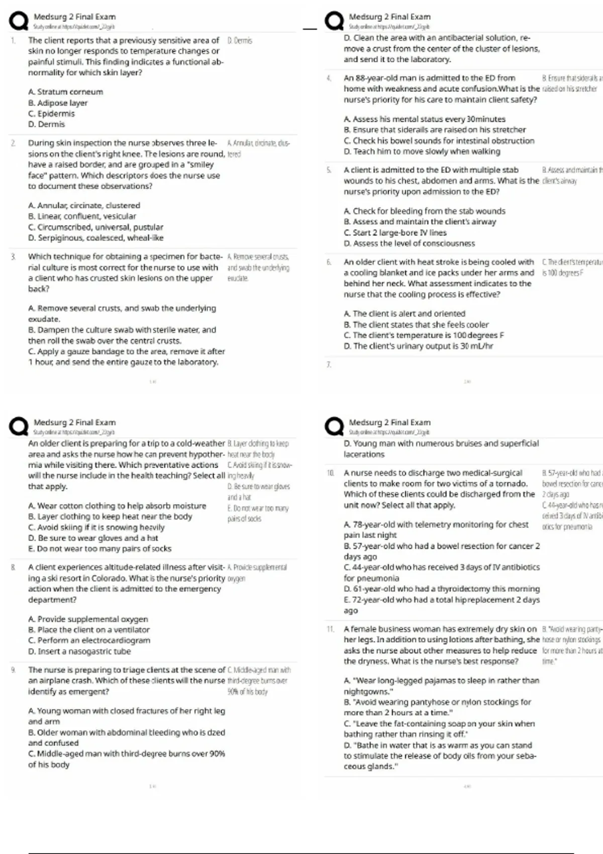 Updated 2025 MedSurg 2 Final study guide featuring high-yield concepts, practice questions, rationales, and test-bank style review. Designed to help nursing students master complex med-surg topics and score 100% on exams, quizzes, and assignments.