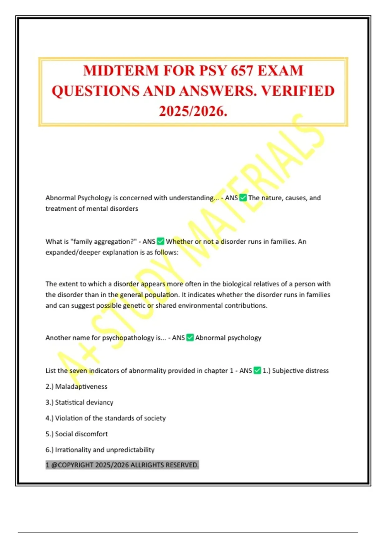 MIDTERM FOR PSY 657 EXAM QUESTIONS AND ANSWERS. VERIFIED 2025/2026.