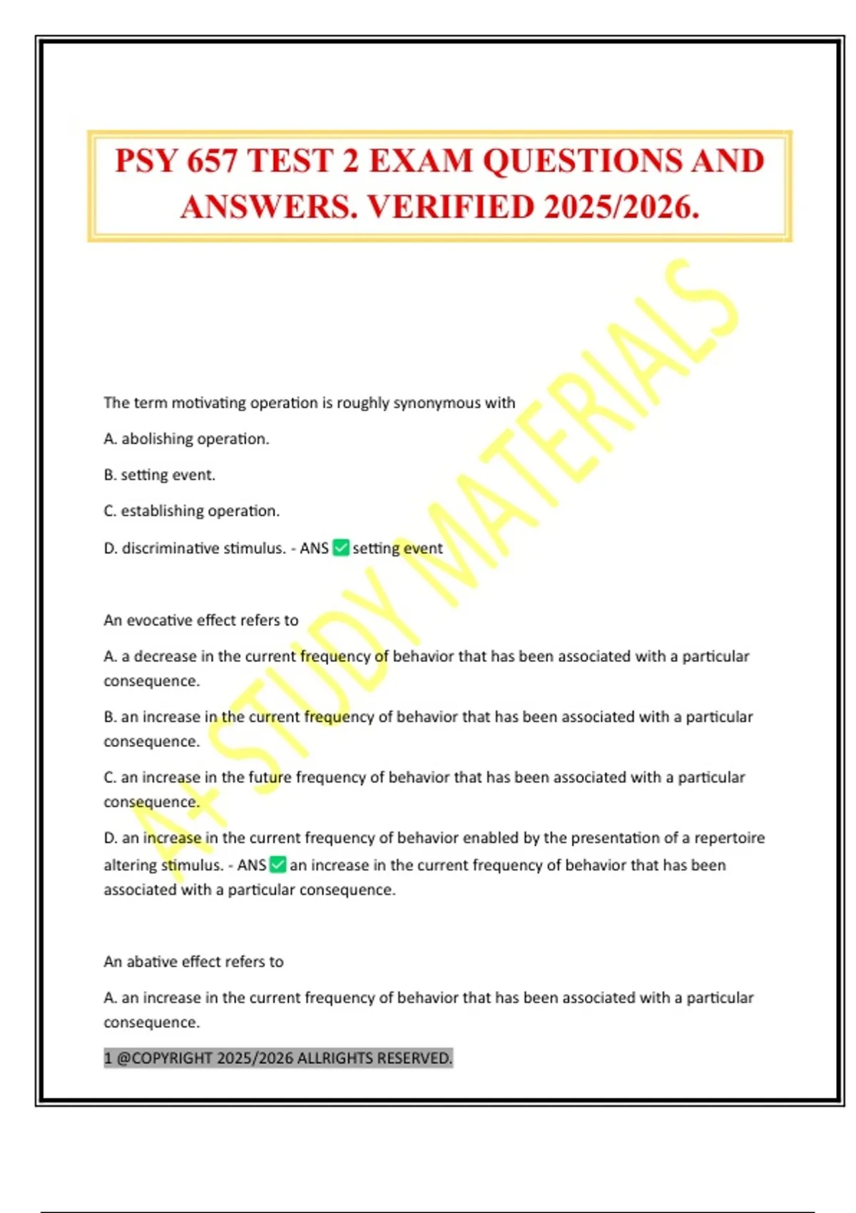 PSY 657 TEST 2 EXAM QUESTIONS AND ANSWERS. VERIFIED 2025/2026.