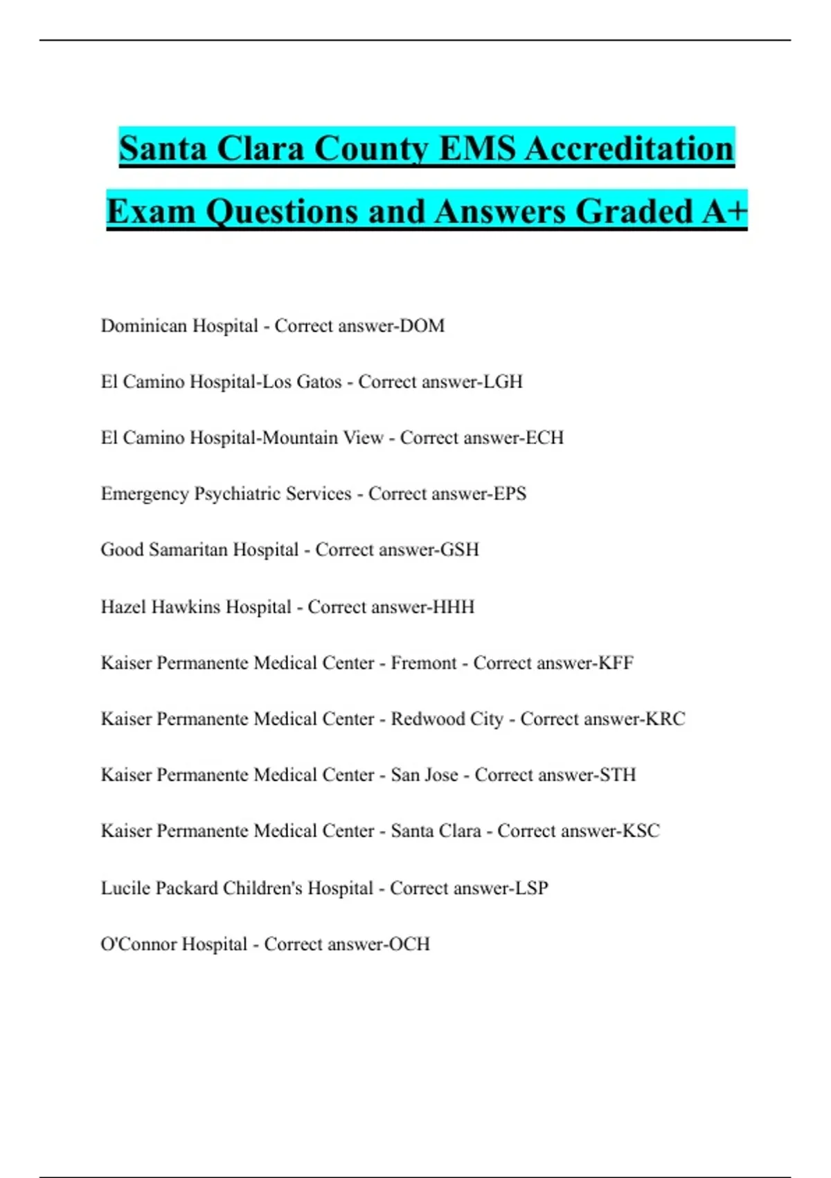 Kaiser Permanente Medical Center - Santa Clara - Correct answer-KSC