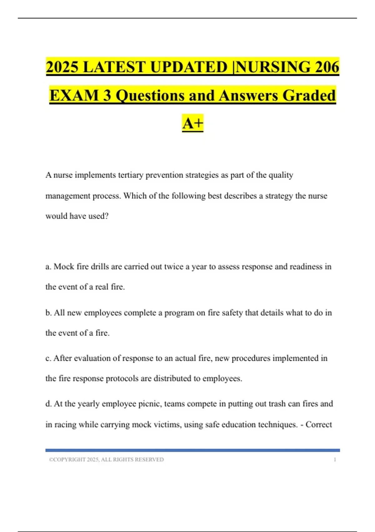2025 LATEST UPDATED |NURSING 206 EXAM 3 Questions and Answers Graded A+