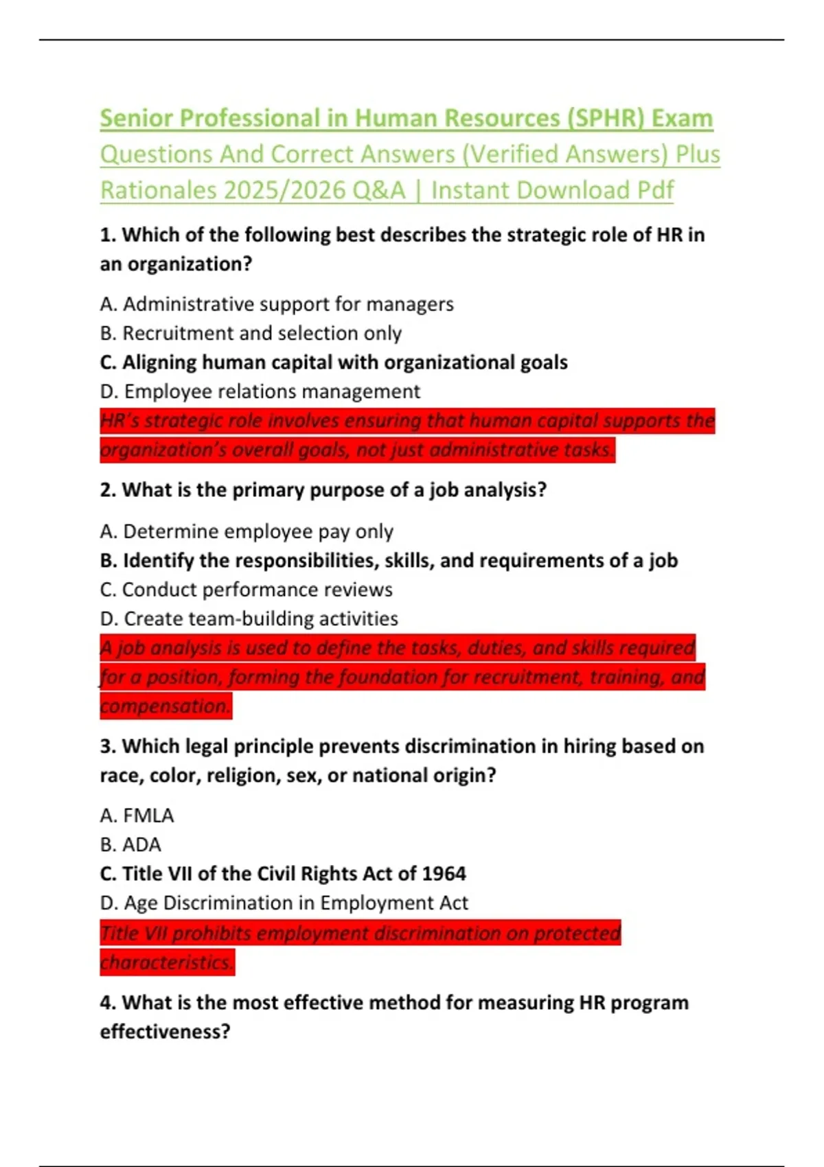 1. Which of the following best describes the strategic role of HR in