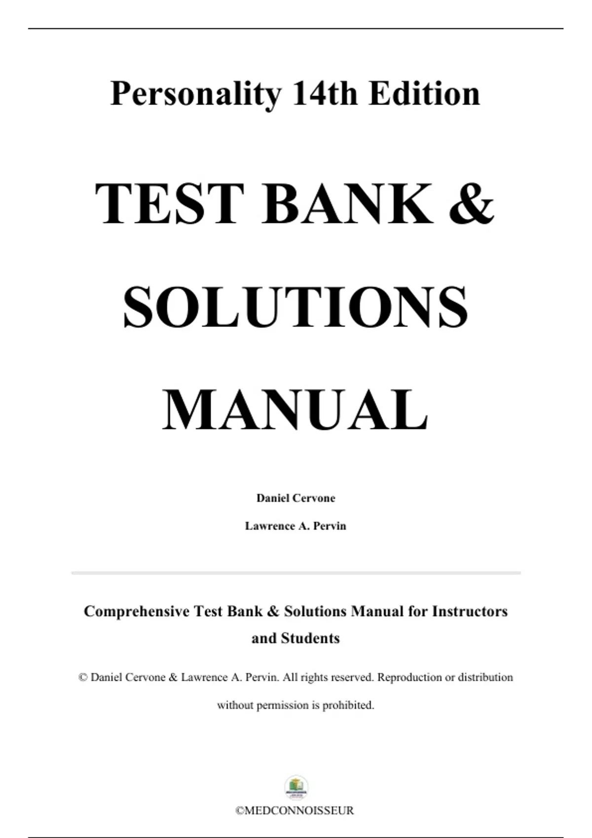 , Test Bank & Solution Manual for Personality, 14th Edition By Daniel Cervone