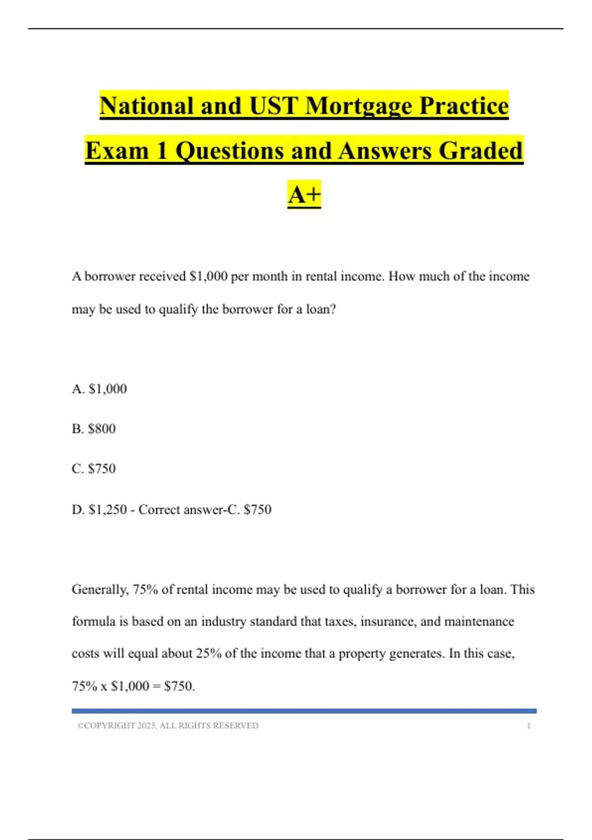 National and UST Mortgage Practice Exam 1 Questions and Answers Graded A+