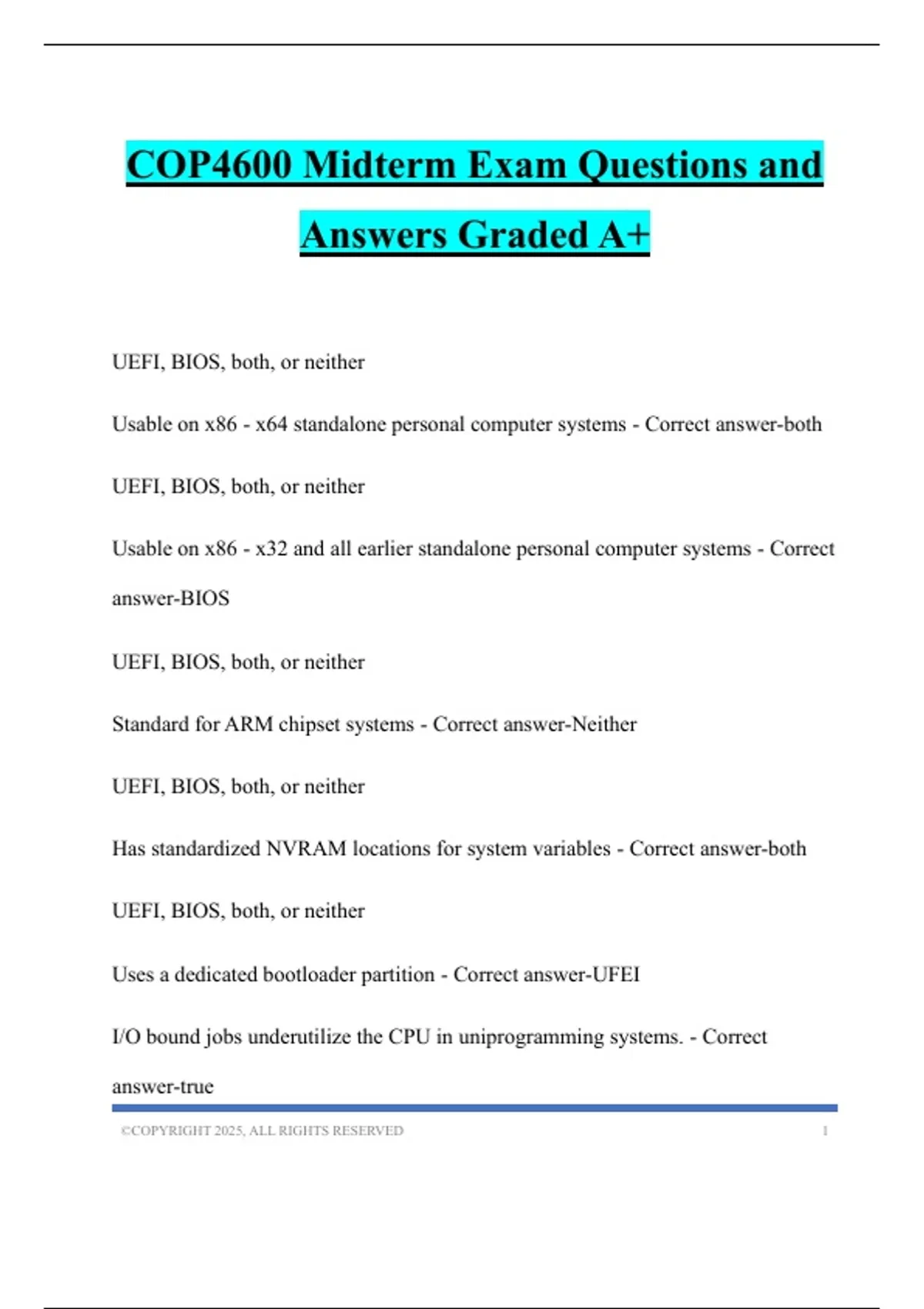 COP4600 Midterm Exam Questions and Answers Graded A+