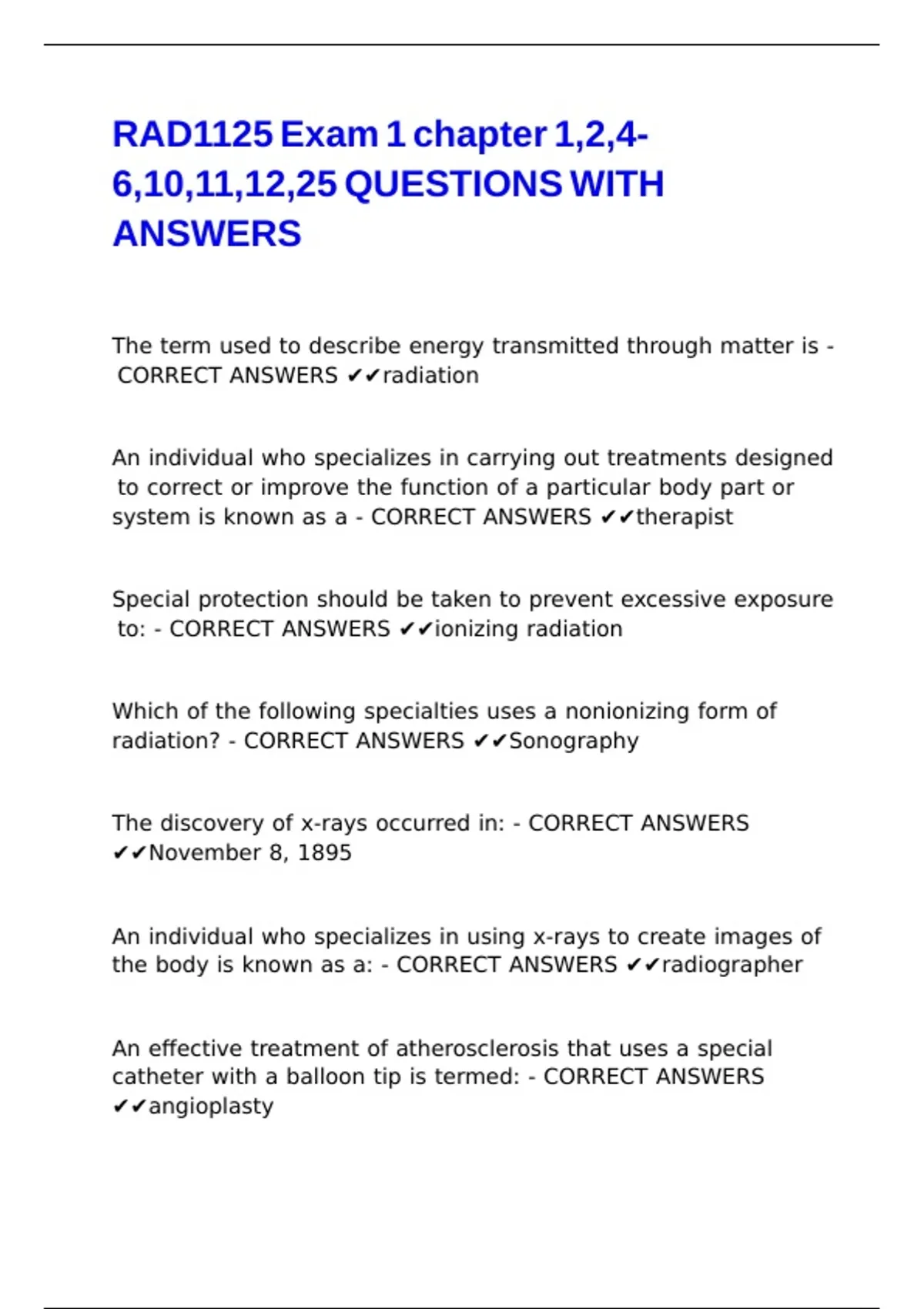 CORRECT ANSWERS ✔✔radiation