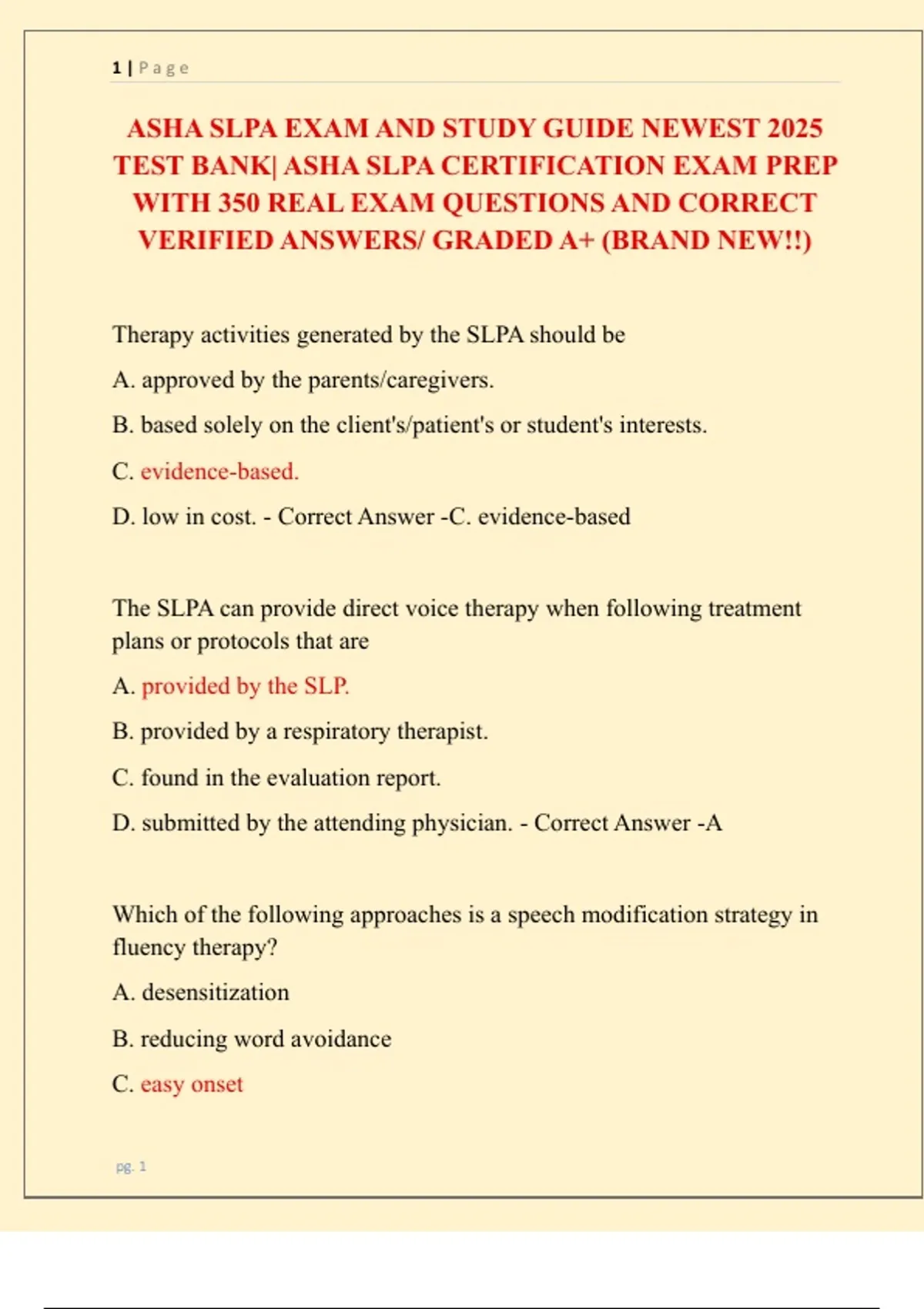 TEST BANK| ASHA SLPA CERTIFICATION EXAM PREP