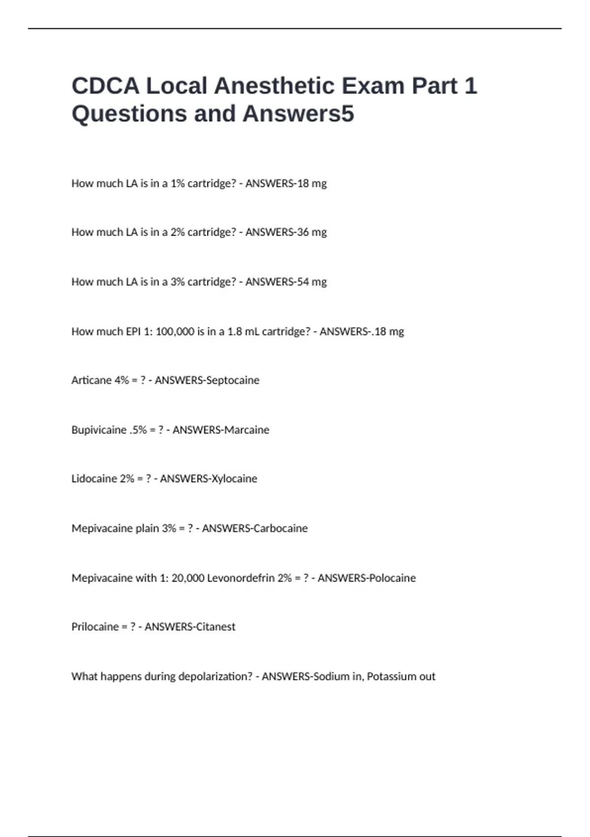 CDCA Local Anesthetic Exam Part 1