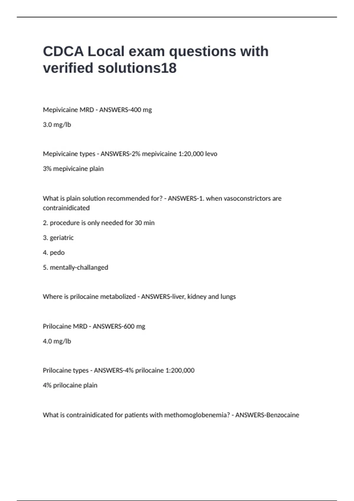 Mepivicaine types - ANSWERS-2% mepivicaine 1:20,000 levo
