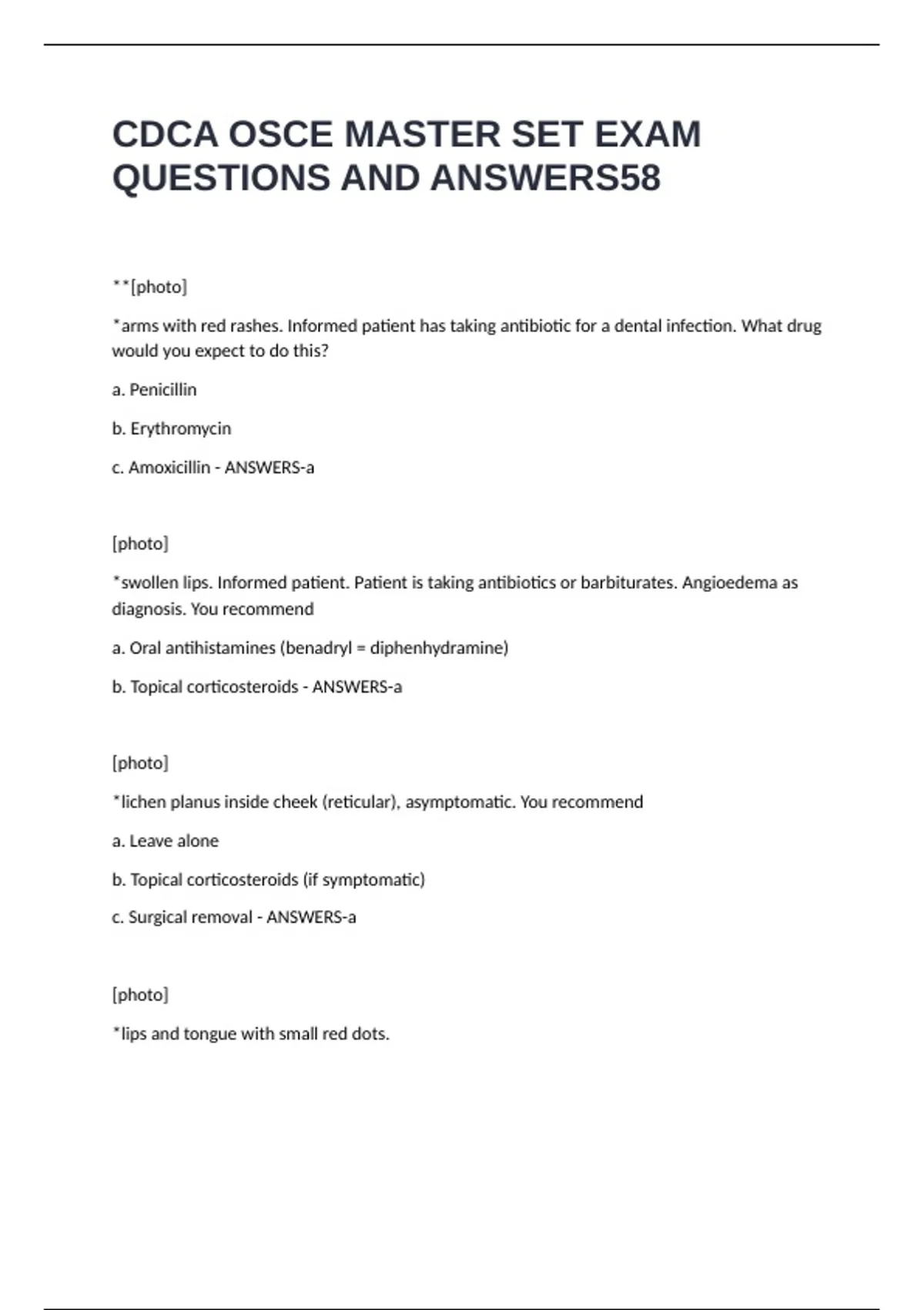 CDCA OSCE MASTER SET EXAM QUESTIONS AND ANSWERS