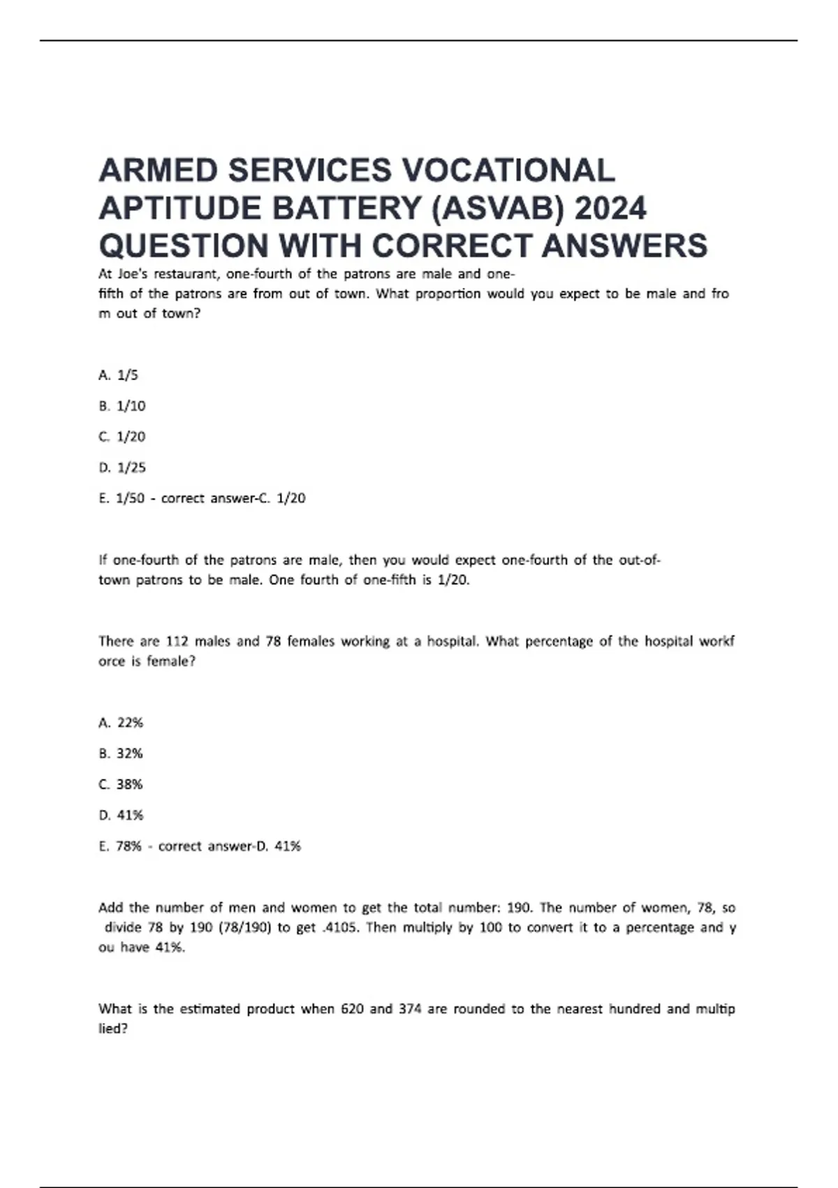ARMED SERVICES VOCATIONAL APTITUDE BATT...2024 QUESTION WITH CORRECT ANSWERS
