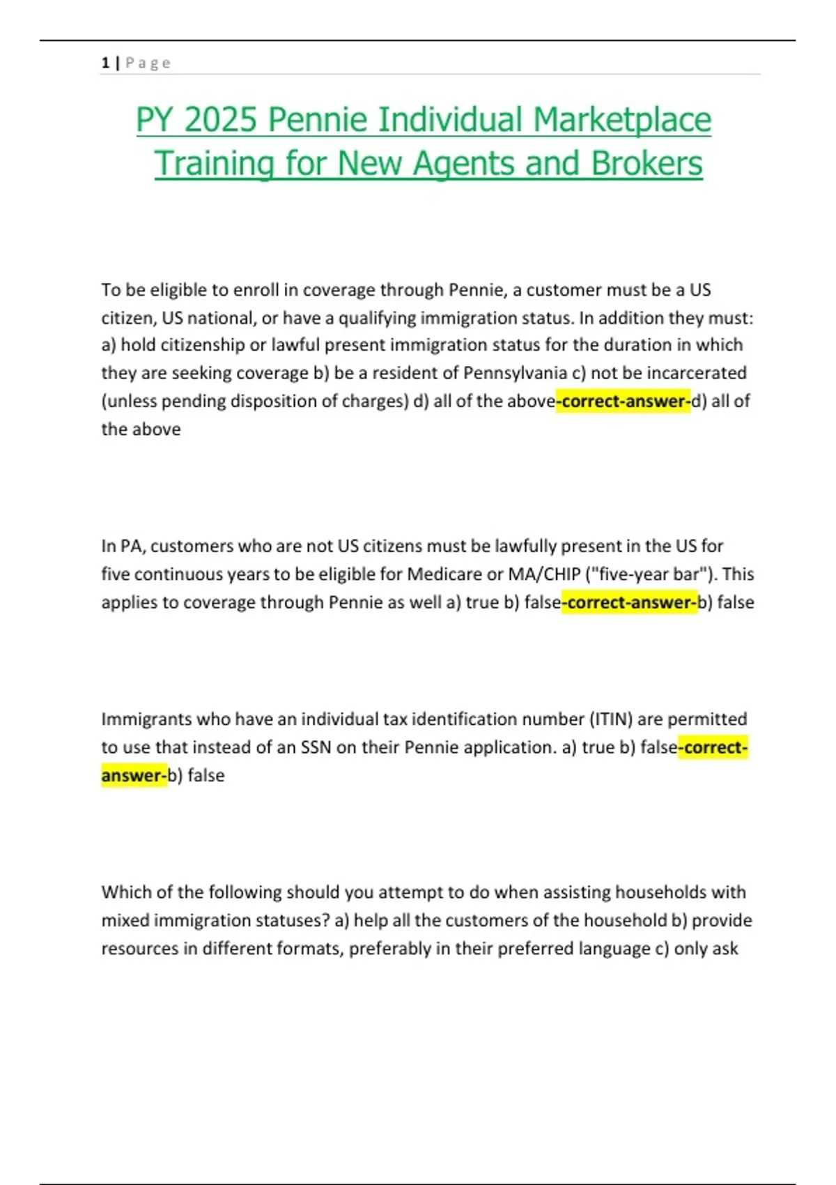 PY 2025 Pennie Individual Marketplace Training for New Agents and Brokers – Complete Updated Study Material