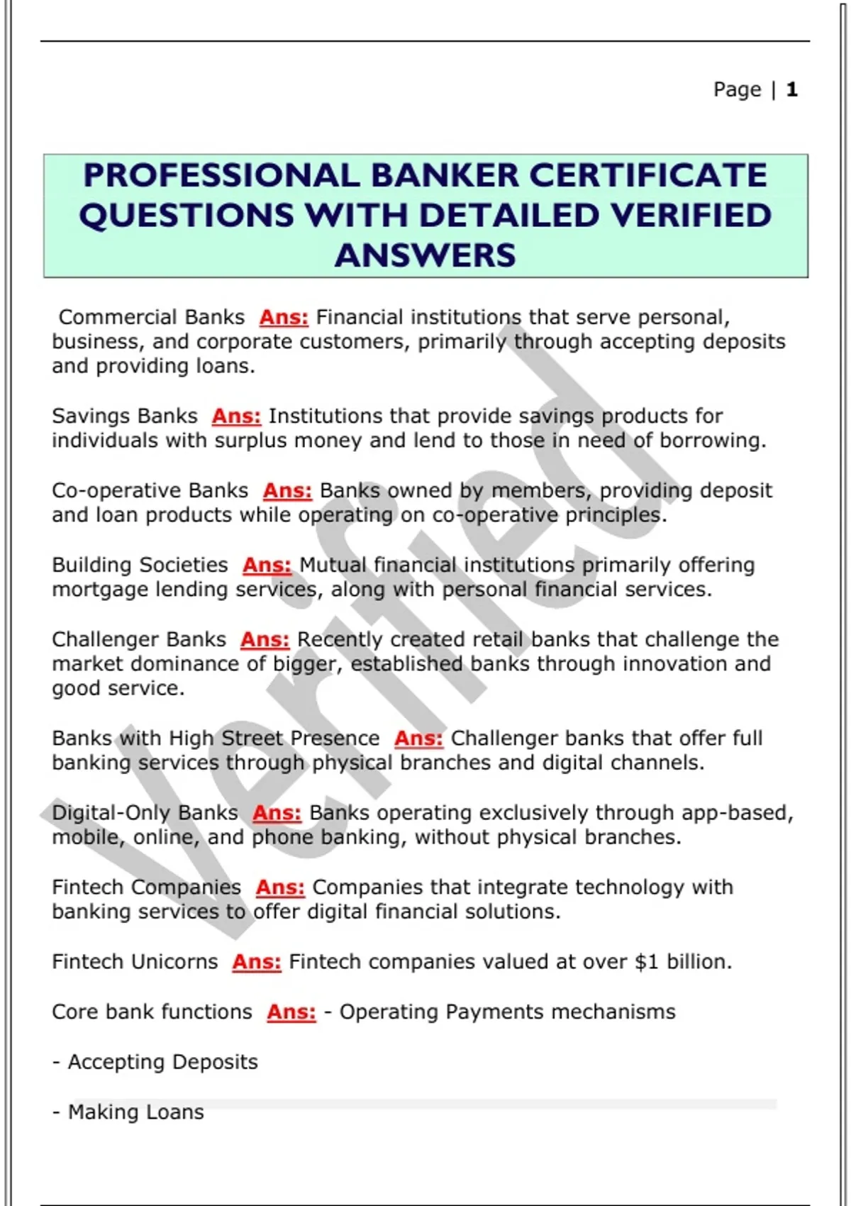 PROFESSIONAL BANKER CERTIFICATE QUESTIONS WITH DETAILED VERIFIED ANSWERS